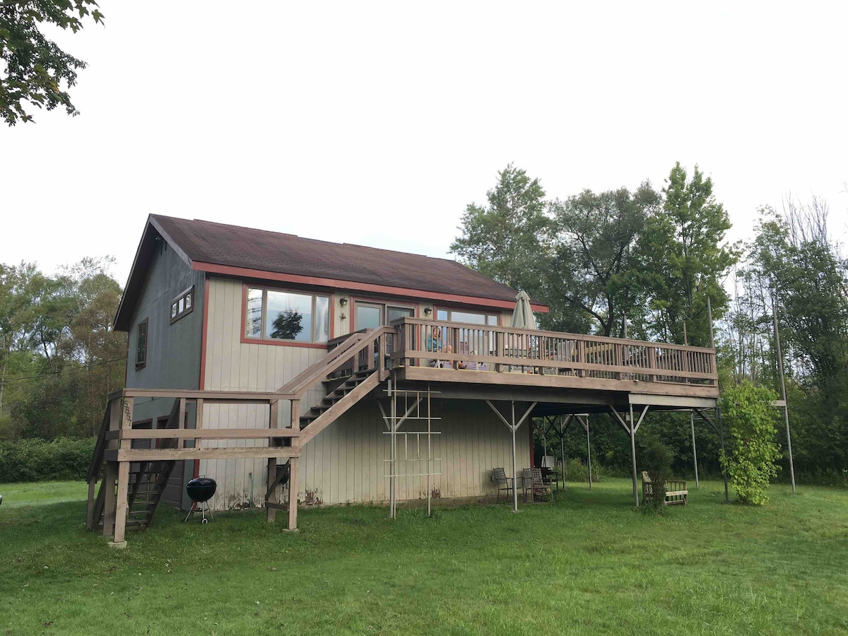 Commodité tranquille À 1 mile de l'I-86. Profitez du confort isolé de cette retraite rustique à proximité de nombreuses attractions de la région. Niché dans les bois surplombant un grand étang avec la nature à chaque tournant. Profitez d'un feu de camp, de la pêche, de l'observation des oiseaux, des sentiers de motoneige et du ski. À proximité du sentier Amish et du lac Chautauqua, du parc d'État d'Allegheny, du National Comedy Center, du musée Lucille Ball, de l'institution Chautauqua et plus encore ! Nous accueillons les retraites de couture/matelassage, les retraites confessionnelles, etc. Venez nous rendre visite !