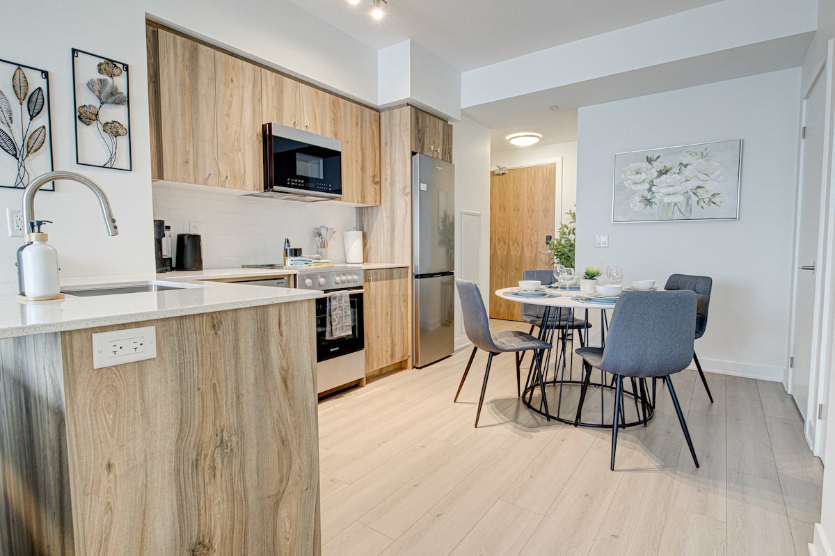 Que vous soyez en voyage d'affaires ou en escapade citadine, cet appartement moderne d'une chambre offre confort et commodité au cœur de Kitchener, avec de belles vues sur la ville. L'aménagement à aire ouverte comprend une chambre confortable, une salle de bain élégante et un canapé-lit, parfait pour les couples, les petits groupes ou les voyageurs d'affaires. Détendez-vous, rechargez vos batteries et profitez d'un séjour sans accroc qui vous fera vraiment vous sentir comme chez vous. Réservez votre séjour aujourd'hui !