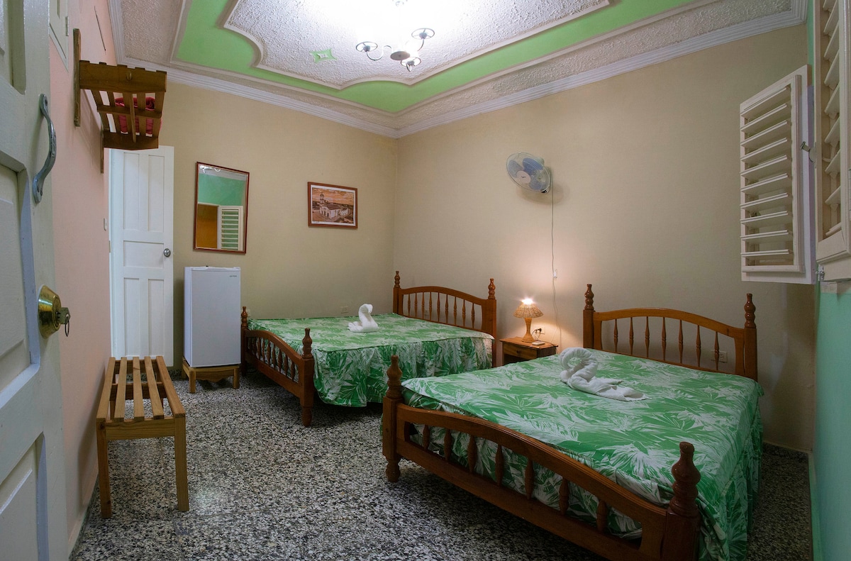 HOSTAL CASA YAMILE. Exclusif pour les clients. Mon logement est parfait pour les couples, les aventuriers, les familles avec enfants. Situé dans le centre historique à proximité des lieux d'intérêt. Plaza Mayor, musées, Casa de la Trova, Casa de la Música, La Canchánchara, galeries d'art, boutiques, restaurants, marchés artisanaux, banques, gare routière Viazul. J'habite à côté dans une autre maison, je vous propose des services de dîner et de petit déjeuner si vous le souhaitez. Réservez. Vivez une expérience cubaine authentique !