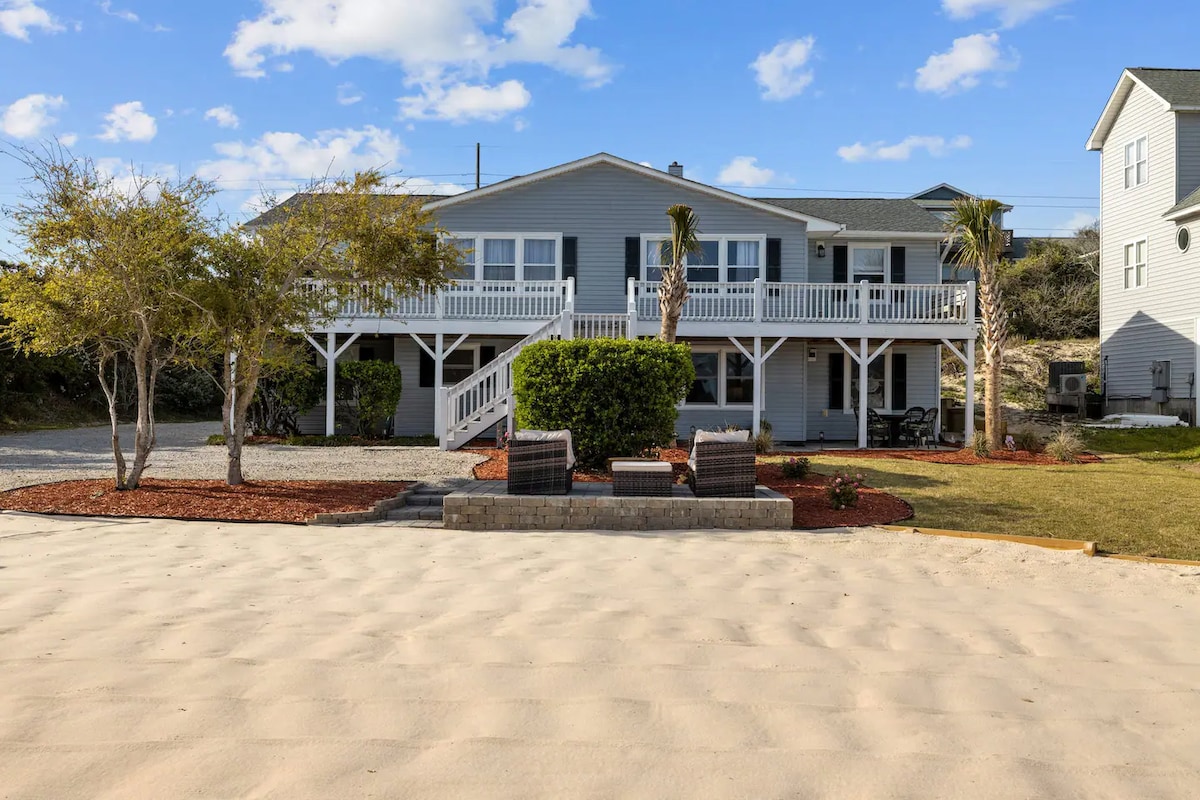 Pet friendly home with walk to both the beach and the sound in under 3 minutes. Our 3-bedroom beach house sleeps 8 and features four decks, a fenced yard for pets, and private neighborhood beach access. Perfect for families, fishing trips, or relaxing beach getaways. We are only a 3 minute walk to several shops and restaurants including a seafood market as well as an ice cream parlor. Slightly down the road you can enjoy mini golf, go carts as well as bumper boats.