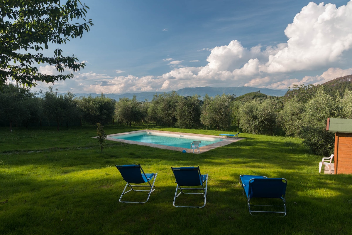 La Villa Stalletta est une maison en pierre de deux étages « rustico » située dans une oliveraie paisible et ancienne, au cœur de la Versilia, au nord de la Toscane. L'ensemble de la propriété est très calme, ensoleillé et offre une vue magnifique sur les collines de la Versilia et les Alpes Apuanes. La grande piscine, traitée au sel naturel, vous invite à profiter de moments mémorables et relaxants après vos excursions touristiques à Florence et Pise, à une heure par l'autoroute.