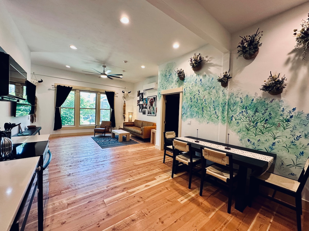 Niché dans un quartier calme, ce logement en duplex d'une chambre propre constitue la base idéale pour vos aventures dans le comté de Wallowa. Vous aurez une intimité totale avec toutes les commodités nécessaires pour un séjour court ou prolongé. Nous fournissons des draps de haute qualité, des meubles confortables et des murs ornés d'œuvres d'art locales. De nombreuses améliorations ont été apportées à cet appartement rétro, notamment une rénovation complète de la cuisine au printemps 2023. Le logement de 2 chambres à côté est également disponible à la location en tant qu'Airbnb.
