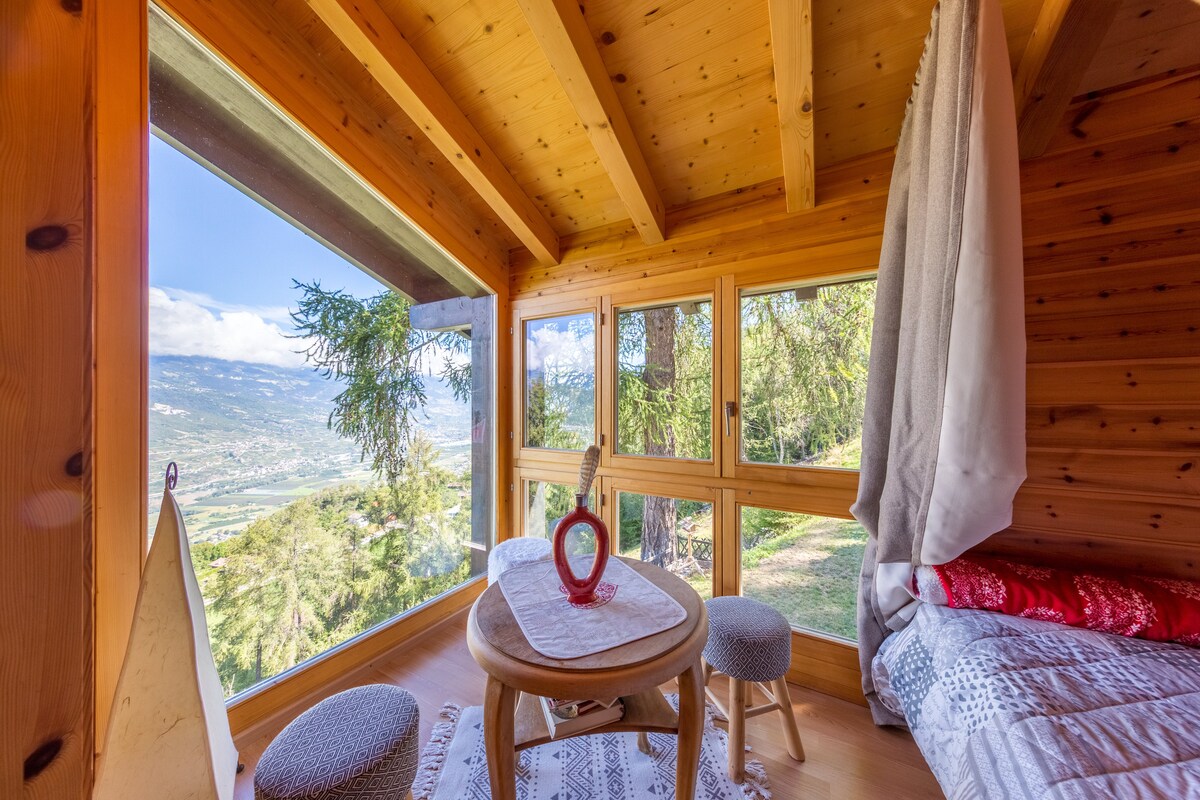Un endroit calme avec des balades en pleine nature, en bordure de forêt. Une magnifique vue sur la pleine du Valais du Rhône. Le mayen est un lieu chaleureux avec son vieux planché qui grince, rénové en 2019, il a aujourd'hui un confort moderne. Un vrai lieu pour s'évader du stress quotidien.