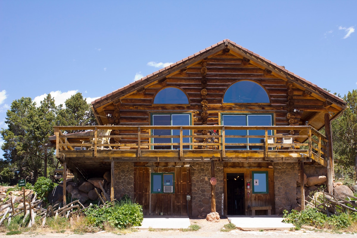 Retraite pour couples, le Canyon Wren Cottage est sculpté dans la roche entre les pins de pinion et les vieux pinceaux d'acajou de montagne. Un pittoresque monolithe de grès sculpté par l'érosion s'élève sur quatre étages au bord de la cour, juste au-delà du chalet. L'approche du chalet depuis Teasdale Road se fait par une courte voie qui traverse une prairie bordée de bois avec une zone humide d'un côté et une culture de luzerne de l'autre. La toile de fond est une belle forme rocheuse, y compris un grand rocher en équilibre.