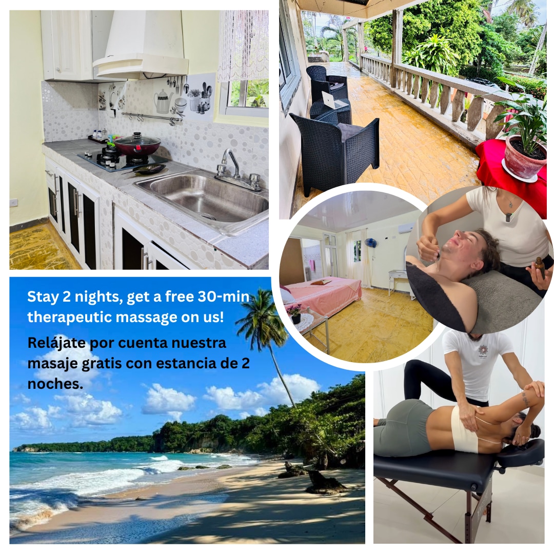 OFFRE SPÉCIALE : pour les séjours de 2 nuits ou plus, nous vous offrons un massage relaxant de 15 minutes par personne (valable pour 2 personnes). Si vous souhaitez prolonger l'expérience ou inclure plus de personnes, vous pouvez le faire moyennant un coût supplémentaire. Ici, pas de précipitation, seulement la paix. C'est l'endroit idéal pour vous ressourcer, explorer les trésors du nord dominicain et terminer la journée par un coucher de soleil inoubliable. Idéal pour ceux qui recherchent une escapade authentique, relaxante et pleine de moments privilégiés.