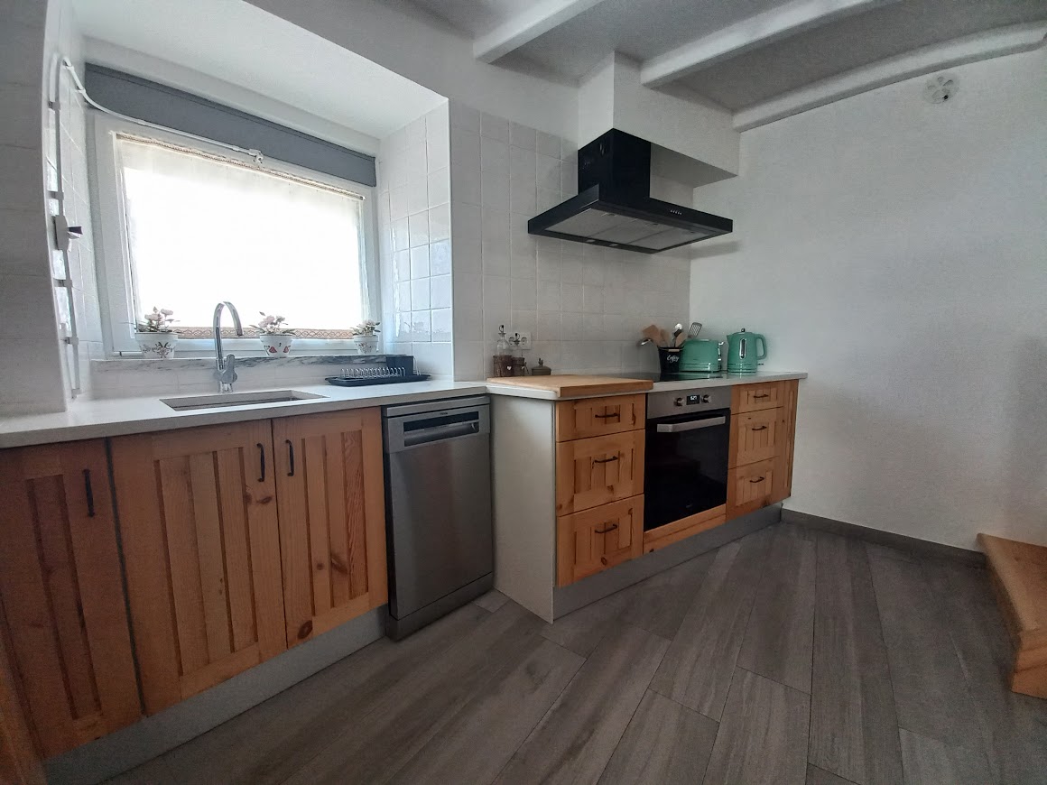 Maison indépendante spacieuse avec une grande fenêtre donnant sur la terrasse privée, le jardin et la piscine partagée. Elle dispose d'une cuisine complète et d'une chambre indépendante avec terrasse donnant sur la montagne et la vallée. Il y a aussi 2 lits simples dans les espaces de vie. Isolée avec du liège et du bois, elle dispose du chauffage au sol, d'une cheminée et d'une ventilation forcée d'air chaud ou froid. Le linge de lit et la serviette pour le lit bébé en option ont un coût supplémentaire de 10 € par nuit.