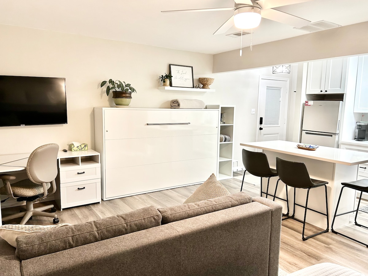 Ce studio pittoresque loin de chez vous est idéalement situé à 20 minutes de Fort Worth & Dallas, à 10 minutes de l'aéroport DFW, et à seulement 15 minutes du Dallas Cowboy Stadium et du Texas Rangers Stadium ! Peu importe si vous aimez faire du shopping, de la randonnée, de la pêche, de la gastronomie ou des hamburgers et des frites, il y en a pour tous les goûts ici ! Le studio dispose d'une télévision Firestick avec commande vocale, d'une cuisine entièrement équipée, d'une table/bureau, d'un lit Tempur-pedic avec une magnifique oasis de patio arrière et bien plus encore.