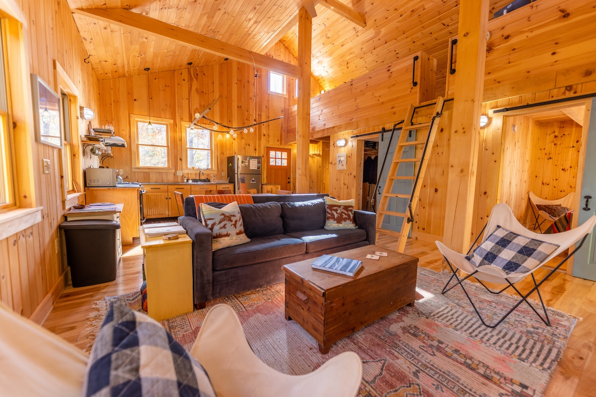 À seulement 15-20 minutes en voiture de Sugarloaf et à 3 minutes du centre-ville historique de Kingfield, ce chalet offre un répit paisible et privé après une journée bien remplie sur la montagne. Notre chalet écologique de 2 chambres et 1 salle de bain est en retrait de la route, avec des voisins éloignés et une connexion Wi-Fi rapide. Vous pouvez être entouré par la nature, mais à seulement quelques minutes de charmants restaurants, de boutiques locales, d'une épicerie, d'une station-service et de nombreux sentiers, rivières et lacs pour la raquette, le ski de fond, la motoneige, la randonnée, les cabanes, le VTT, le kayak et plus encore.