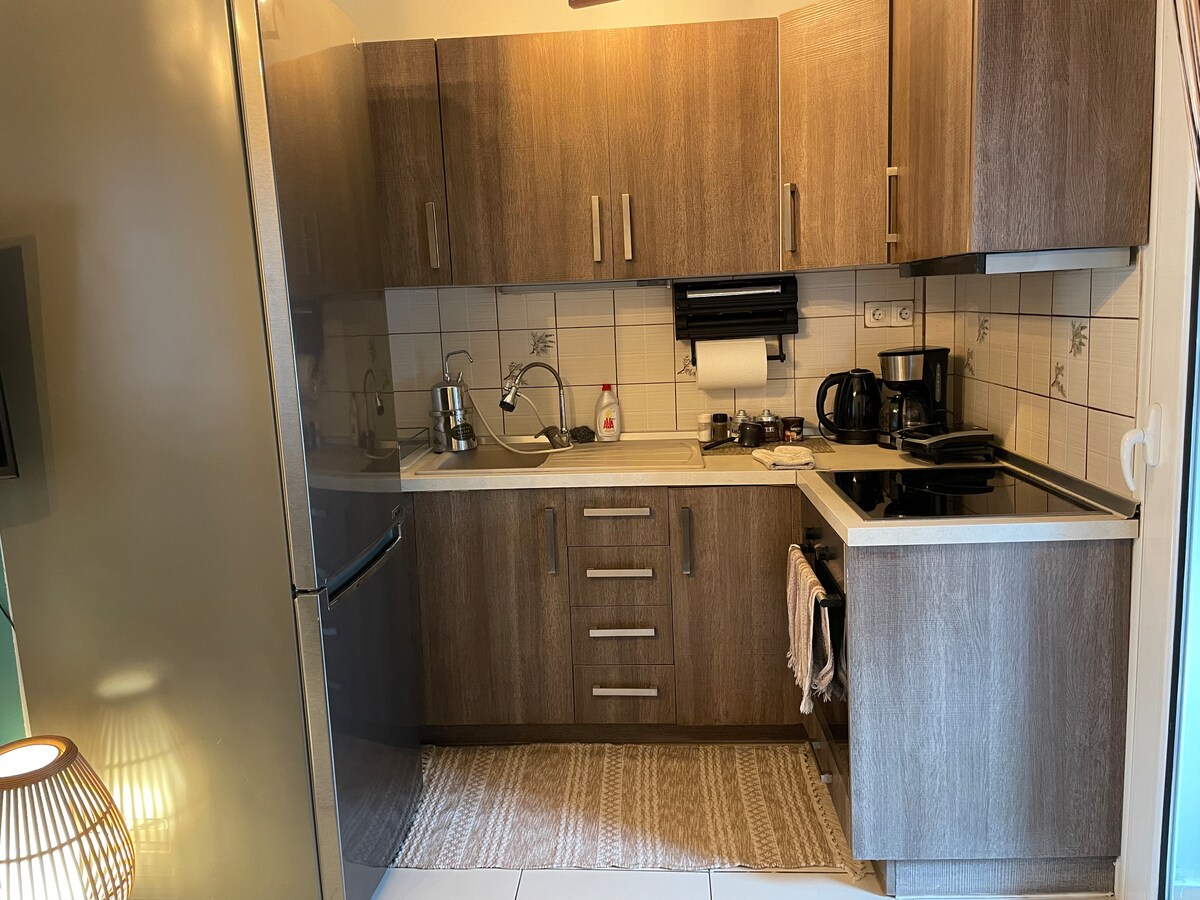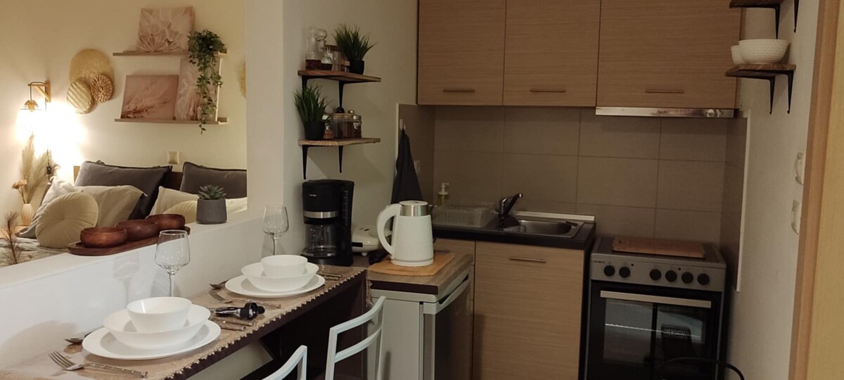Un appartement moderne dans le centre d'Alexandroupolis entièrement équipé de tout le confort moderne pour un séjour confortable pour 2 personnes. Son emplacement est idéal pour accéder au centre et à la route côtière à pied. Dans un rayon de 100 m, vous trouverez un supermarché, une pharmacie, une station-service, un fast-food, une pâtisserie, etc. L'arrêt de bus urbain est à 50 m. La distance de l'aéroport est de 4 km, du port de 500 m et de la gare routière de 300 m.