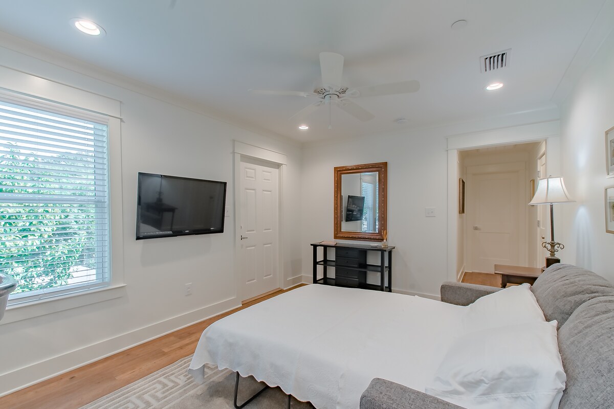 Our one bedroom with a loft is 1400 sq ft directly across from Greers grocery store, above Towne & Beech, and a stones throw from Page & Palette. There are so many shops & restaurants within walking distance of the condo and I love sitting on the balcony taking in the sites. The master bedroom has a king bed with a tempur pedic mattress as well as a master bath with tub and separate shower. The loft area has a queen bed with a tempur pedic mattress as well as a twin daybed.