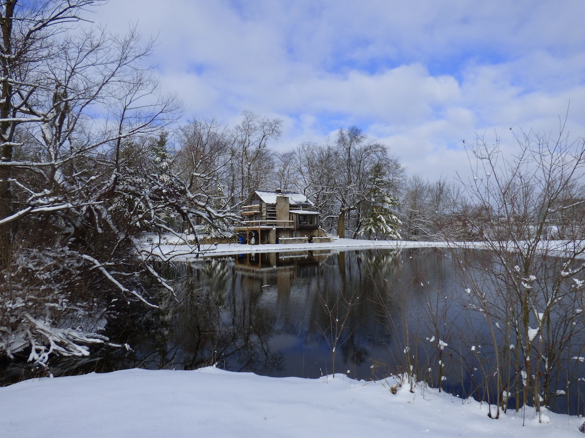 Détendez-vous dans cette escapade unique et tranquille. Dans une charmante micro-maison entourée d'arbres et de chant des oiseaux, vous pouvez vous déconnecter et vous détendre sans aller trop loin des sentiers battus. À seulement 15 minutes en voiture du centre-ville, nous sommes idéalement situés entre Fountain Square, Irvington, Beech Grove et Wanamaker. Détendez-vous avec une tasse de thé et un bon livre, asseyez-vous sur le patio et observez les cerfs, ou faites une promenade dans notre ferme de permaculture de 9 acres.
