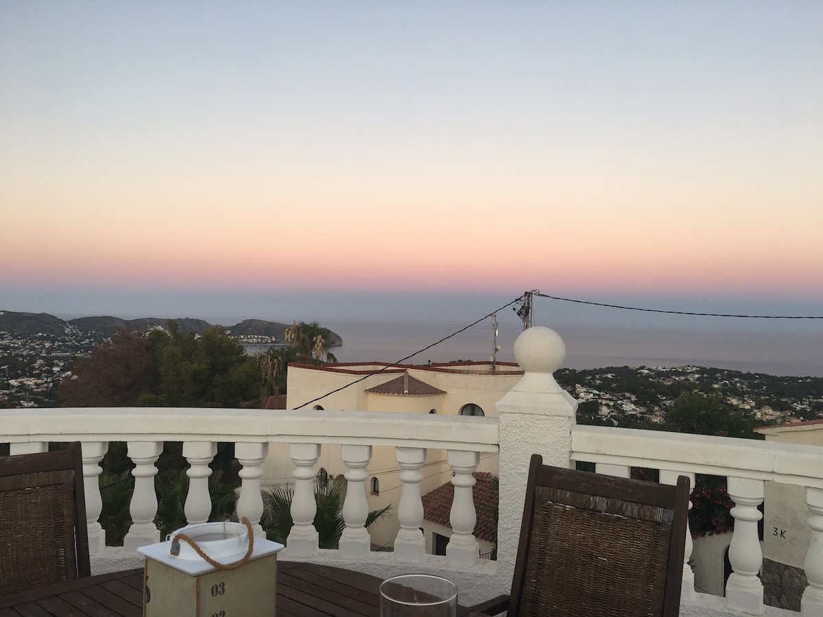 Bienvenue à Horizonte Azul, un nid douillet avec vue imprenable sur la mer et les spectaculaires falaises de la crique Moraig. Situées en quartier résidentiel, vos deux jolies chambres ont des entrées individuelles et sont reliées par une salle de bain à l'italienne. Sur votre terrasse ombragée, une table et meuble évier vous permet de préparer le petit-déj. Activités? Réservez une leçon privée de Pilates, faites de la rando, de la plage ou visitez le coin. Nous nous réjouissons de votre séjour!