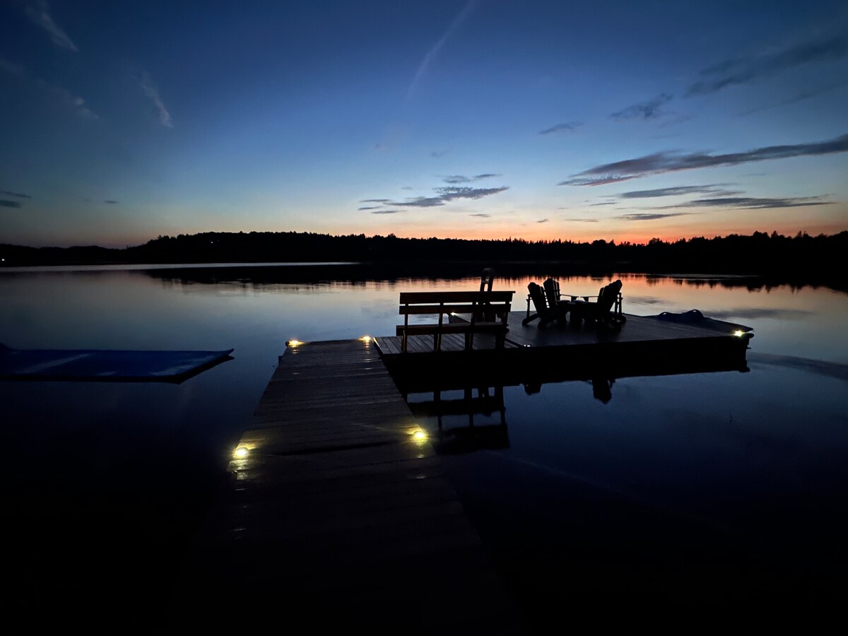 Bienvenue à Puerto Benoir, un chalet au bord de l'eau sur le lac Benoir. Ce chalet a été rénové de haut en bas et se trouve en bordure du parc provincial Algonquin. La télévision par satellite avec programmation haut de gamme et Internet haut débit WIFI avec des données illimitées est incluse. L'entrée graduelle dans le lac au fond de sable est ce que vous trouverez. Le chalet a un quai qui peut contenir le bateau, et il y a un radeau de baignade dans la baie. Le chalet dispose de 2 pédalos, de 2 kayaks pour enfants et de 2 kayaks adultes.