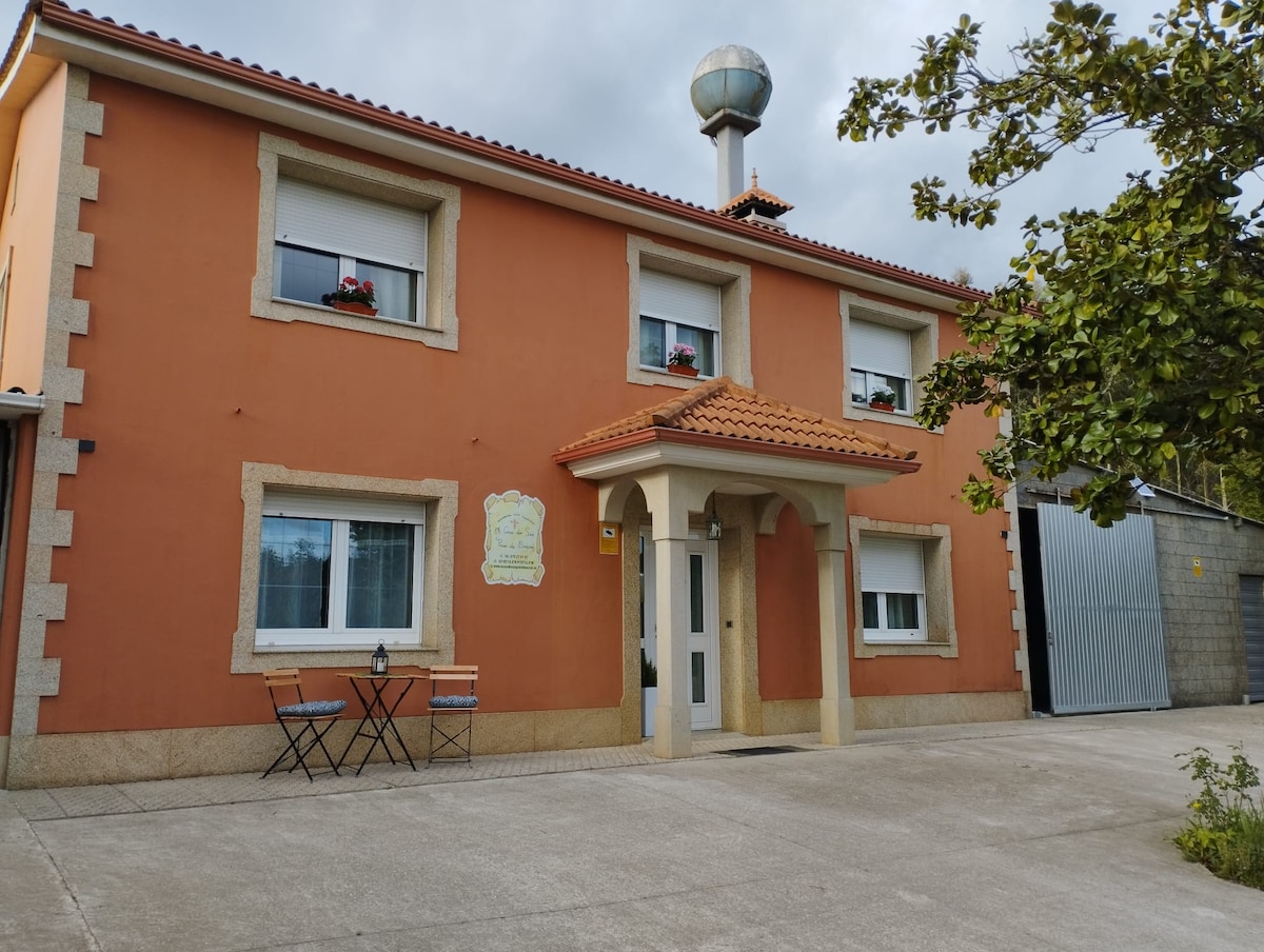 Dans ce logement, vous respirez la tranquillité : un endroit pour écouter le son de la nature, déconnecter du stress de la ville, faire des sentiers de randonnée,prendre le petit déjeuner et manger en plein air, vous baigner dans la piscine tout en préparant un bon barbecue en couple ou en famille, dans un environnement spectaculaire où vous pourrez visiter le point de vue le plus haut de La Corogne avec ses vues à couper le souffle,aller à la plage fluviale sur le lac das Encrobas, parc aquatique. Proche de l'aéroport de La Corogne et De Santiago.