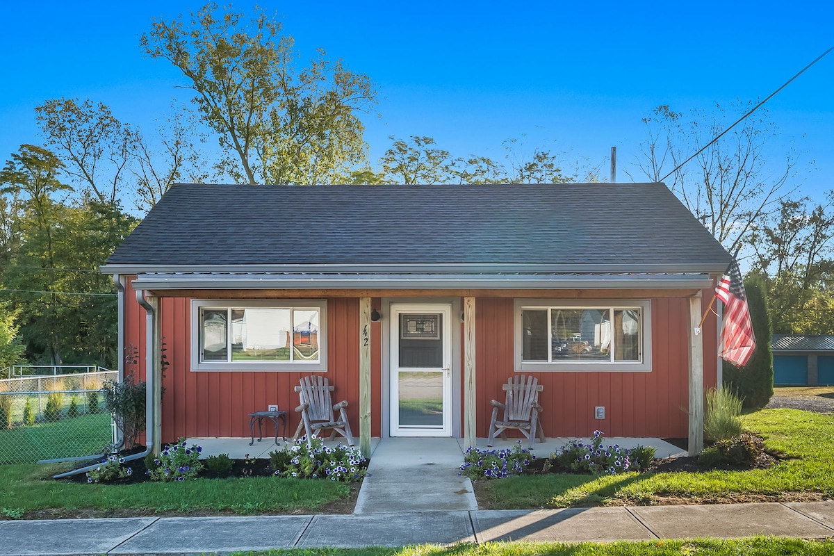This is a small private waterfront cottage located in a park like setting with a wonderful view of the Maumee River. It is ideal for a couple's get-away. This is a one room 16'X20' studio apartment which includes a separate bathroom and two sleeper sofas that pull out into double sized beds with double mattresses for comfort. The entire cottage was remodeled in 2020 and has a new kitchen and a new bath. In addition to the free use of kayaks, there is a 10 mile walking trail withn 50 feet .