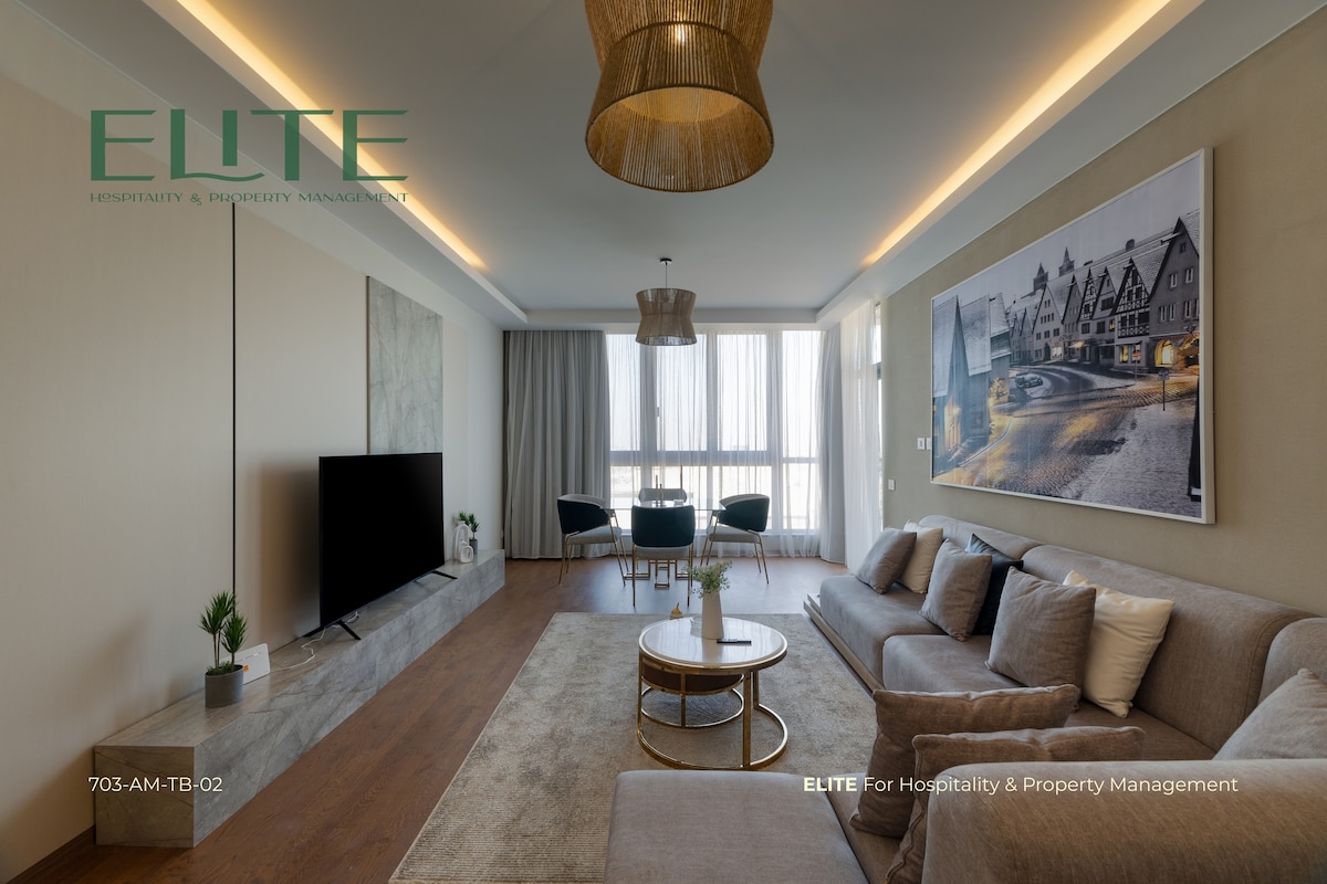 Profitez d'un séjour de style hôtelier dans ce luxueux appartement intelligent à Sheikh Zayed. Profitez de deux suites parentales élégantes avec salles de bains privées, d'une troisième chambre avec canapé-lit, d'un jacuzzi privé, d'une télévision connectée de 65", d'un système audio, d'un éclairage intelligent, de la climatisation centrale et d'une entrée sans clé. Situé dans un quartier calme et haut de gamme, à proximité de restaurants, de centres commerciaux et d'hôpitaux. Parfait pour les familles, les jeunes et les voyageurs d'affaires à la recherche d'intimité, de luxe, de confort et d'une expérience haut de gamme.