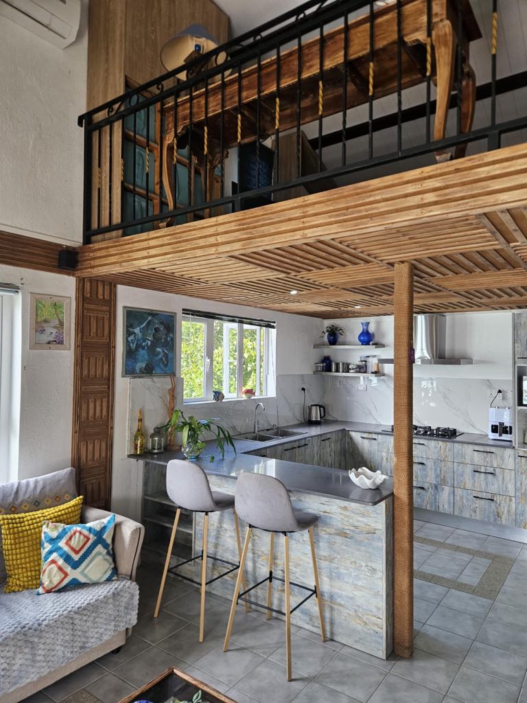 Turquoise villa une villa Chaleureuse et apaisante, idéal pour passe des bons moments en famille ou entre amis c’est plus qu’une déco magnifique ce une immersion dans le monde d’un grand artiste mauricien Elle se trouve à trois minutes en voiture de la plage deux minutes en voiture de Shangri-La hôtel trois minutes en voiture du centre de trou de douche à deux minutes de la baie qui mène à île aux cerfs, possède un parking privé et caméra extérieur existant