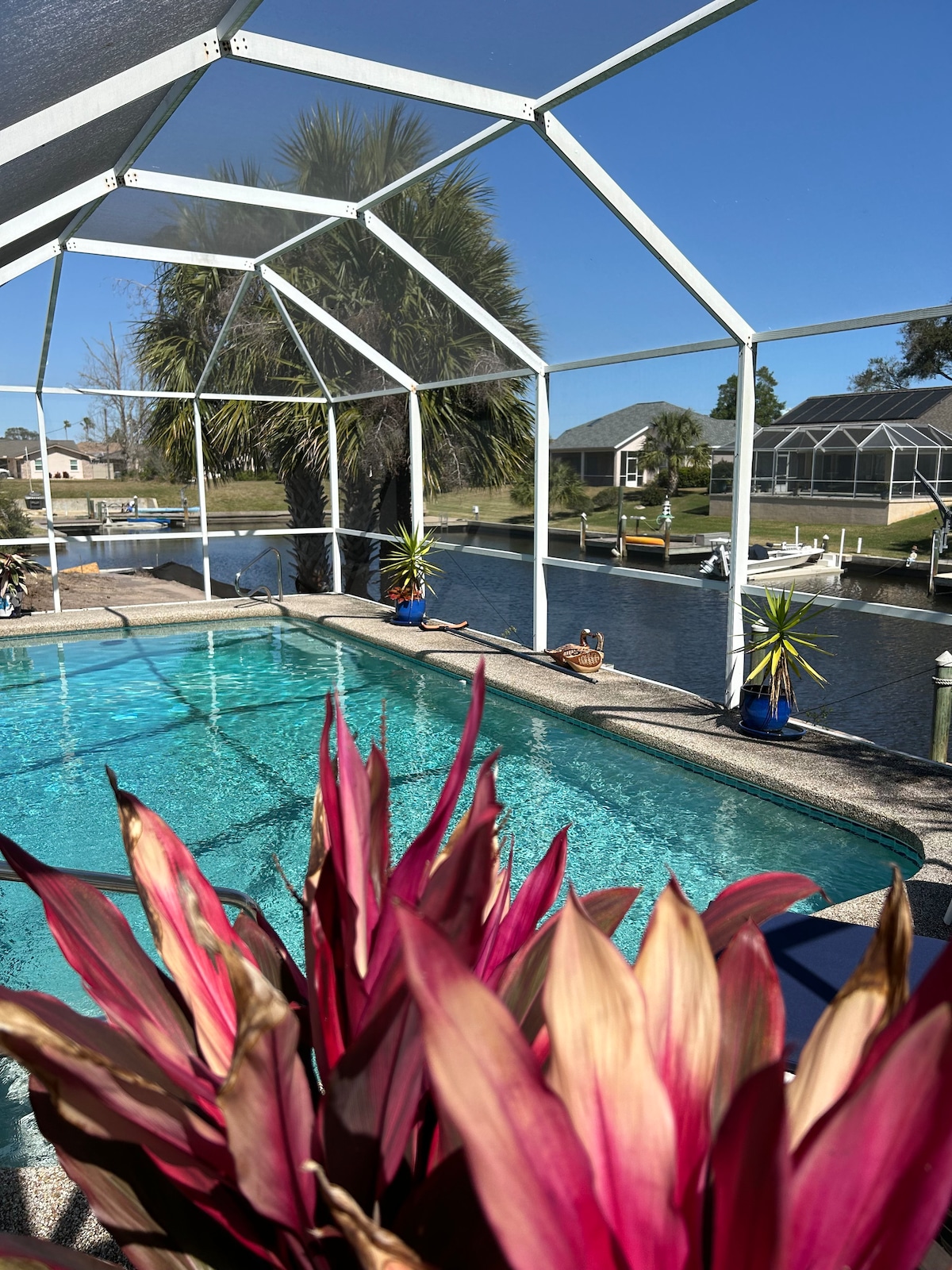 Welcome to Casa Claudio Palm Coast! This beautifully renovated home on a corner lot has an awesome brand new screened in heated pool with a sun shelf and a complete game room. Enjoy your dining in your full kitchen or grill out on the huge Lanai complete with kitchen and bar. Dine outside by the pool or watch a movie. Nearby access for canoes & kayaks, saltwater fishing, walking trails & wildlife. Amazing beaches, golf courses & restaurants. The perfect place to create lifelong memories.