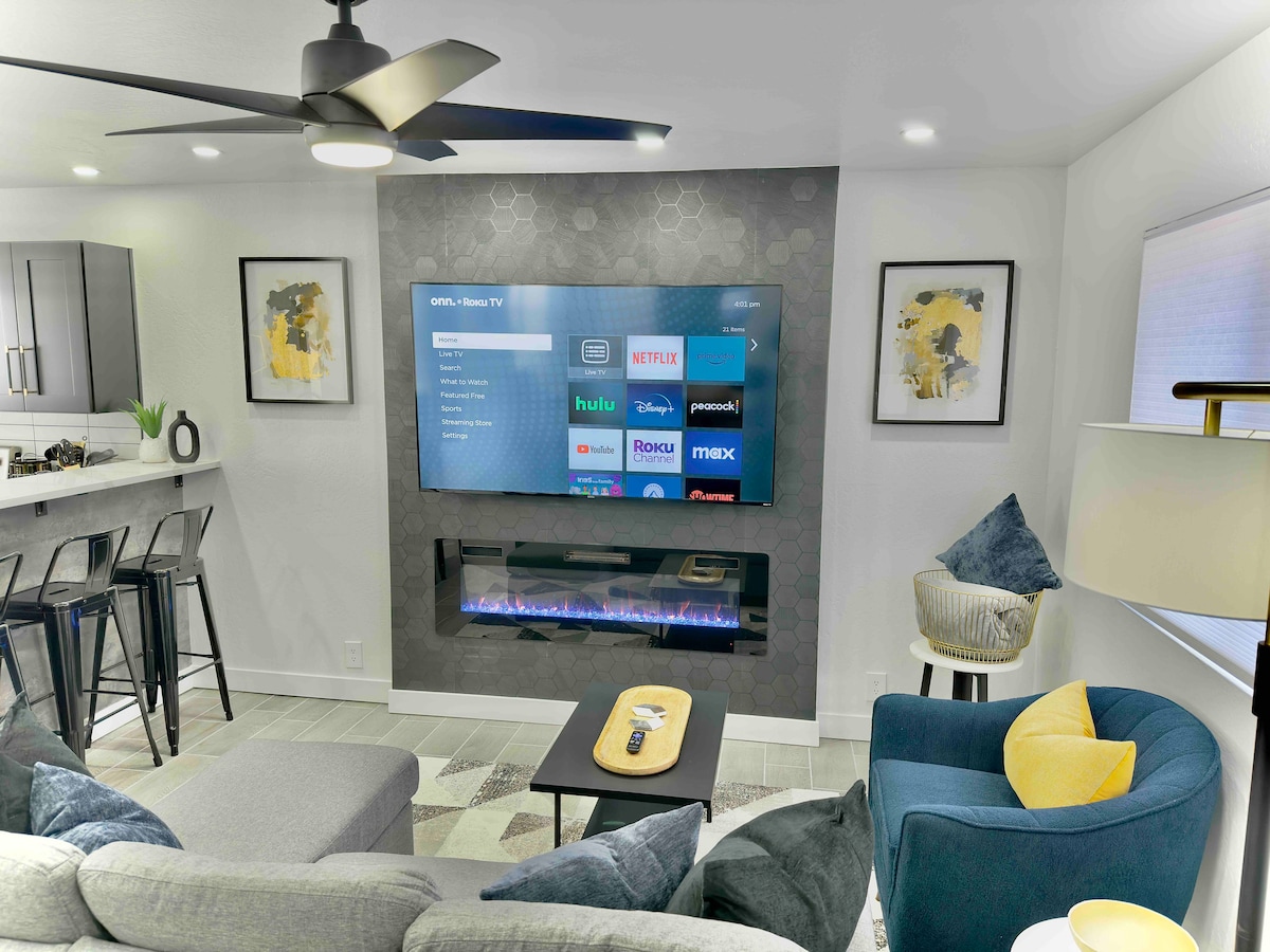 Détendez-vous dans la lumière naturelle et les rendez-vous luxueux de ce studio moderne niché jusqu'à un parc de la ville et attaché à notre maison principale. Magnifiquement rénové et inondé de lumière, le spacieux 375 pieds carrés est votre maison loin de chez vous parfaite pour explorer les merveilles de Flagstaff et du nord de l'AZ. Des équipements tels que de la literie moelleuse, une kitchenette entièrement approvisionnée et une télévision intelligente se combinent avec des touches supplémentaires telles que la blanchisserie, une douche à effet pluie, un patio commun relaxant et une connexion Wi-Fi de 400 Mo. Remarque : pas de climatisation. Bienvenue !