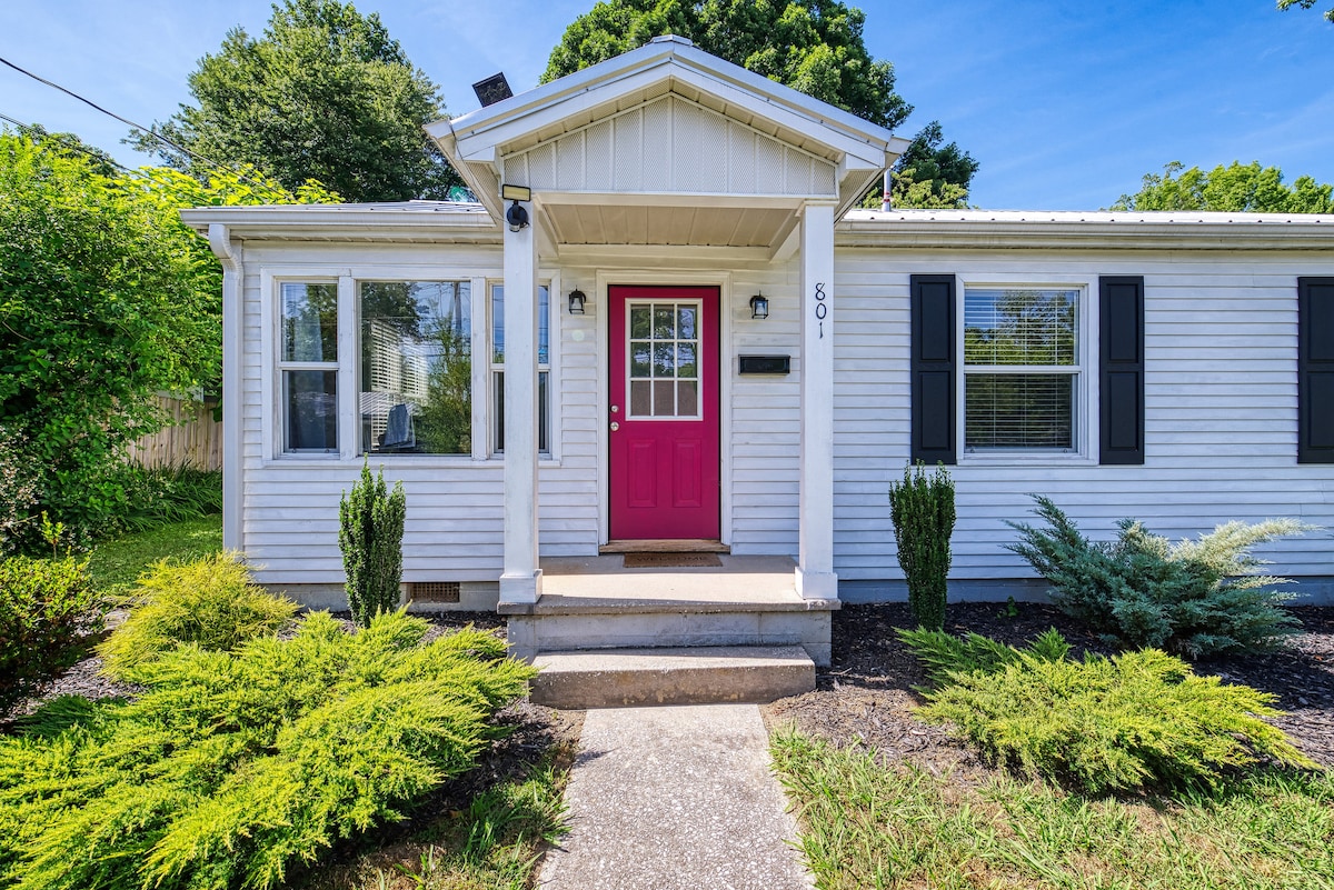 Chalet artisanal des années 1950 entièrement rénové, nouveau mobilier contemporain, 2 chambres, équipements modernes, tout le confort d'un chez-soi. Situé à quelques pas du centre-ville de Hendersonville. Planchers de bois franc, nouveaux meubles, lits luxueux, cuisine rénovée, lave-linge/sèche-linge, salle de bain rénovée, téléviseurs intelligents et Internet haut débit. Veuillez noter que l'appartement « Blue Haven Studio » est attaché à l'arrière de cette maison, mais il est complètement séparé avec sa propre entrée/serrure à digicode et il n'y a pas d'espaces partagés.
