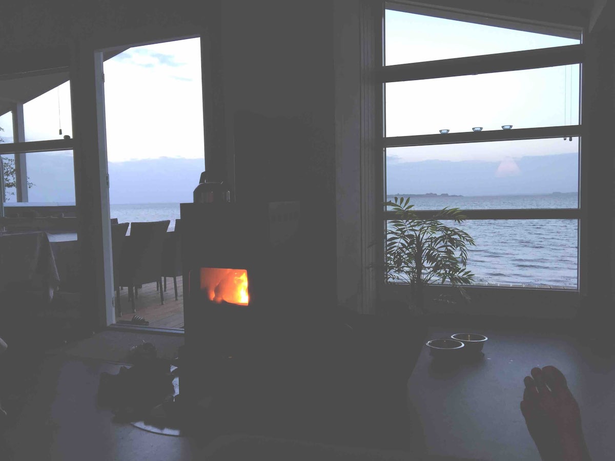 Chalet cosy directement sur la plage. Il a la paix et le calme et une superbe vue sur l'eau. Une maison d'une chambre avec une annexe adjacente avec 2 chambres. 2 belles terrasses. Une tout droit vers la plage. L'autre est niché derrière des clôtures vivantes - presque toujours à l'abri.