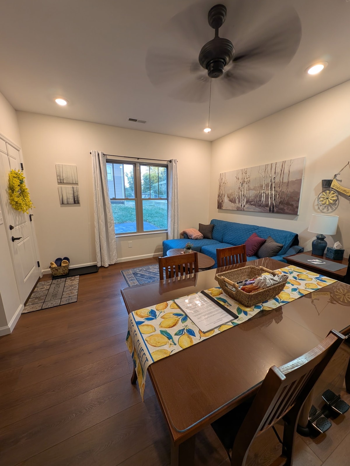 Décoration chaleureuse et agréable. Chambre spacieuse avec un beau bureau pour votre espace de travail sur ordinateur portable. La salle de bain dispose d'un lave-linge et d'un sèche-linge. Le salon dispose d'un futon en cuir épais rembourré pour un deuxième lit, d'un comptoir avec micro-ondes/friteuse à air, de produits en papier et d'une cafetière Kuerig, d'un nouveau réfrigérateur de 5', d'une télévision à écran plat de 50". Accès au jacuzzi extérieur. Internet était faible, ce qui a affecté certains commentaires, mais il est très rapide maintenant. Près de Cedar Lake Winery, Big Joel's Safari, Long Row Lavender Farm et Pumpkins Galore