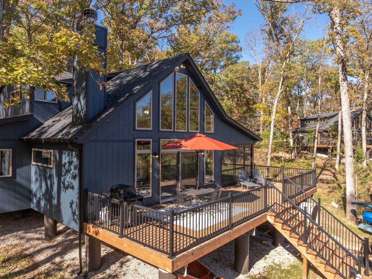 À seulement 45 minutes de St. Louis, Innsbrook Resort est une communauté boisée de 7 500 acres avec plus de 100 lacs. En tant qu'invité d'Innsbrook, vous aurez accès à tous les équipements, divertissements et restaurants du complexe. Après une journée d'activités amusantes, vous profiterez de vous détendre à Ella's Roost, un chalet en bord de mer de deux chambres + loft, deux salles de bains. Les deux chambres ont un lit Queen Size et le loft pour trois personnes offre un lit superposé et un futon.