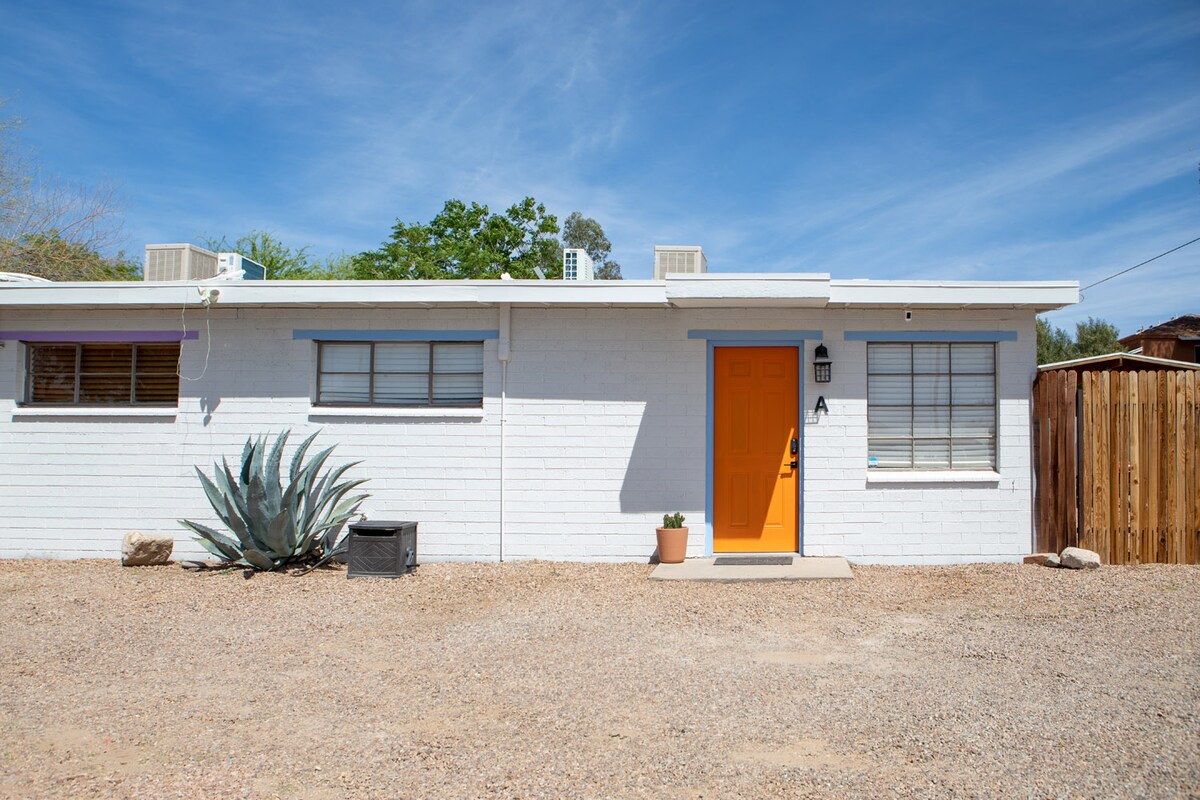 Situé dans la belle ville de Tucson, en Arizona... ici, vous trouverez un endroit qui suscite la créativité, alimente l'imagination et accueille réflexion et détente. Mon logement est une casita en brique d'adobe de 480 pieds carrés récemment rénovée. Grâce à un design et une décoration bien pensés, la casita est un endroit confortable et élégant. Avec une cuisine saisissante, une salle de bain luxueuse, une literie gourmande et toutes les commodités dont vous pourriez avoir besoin. Venez prendre une dose du désert dans toute sa majesté !