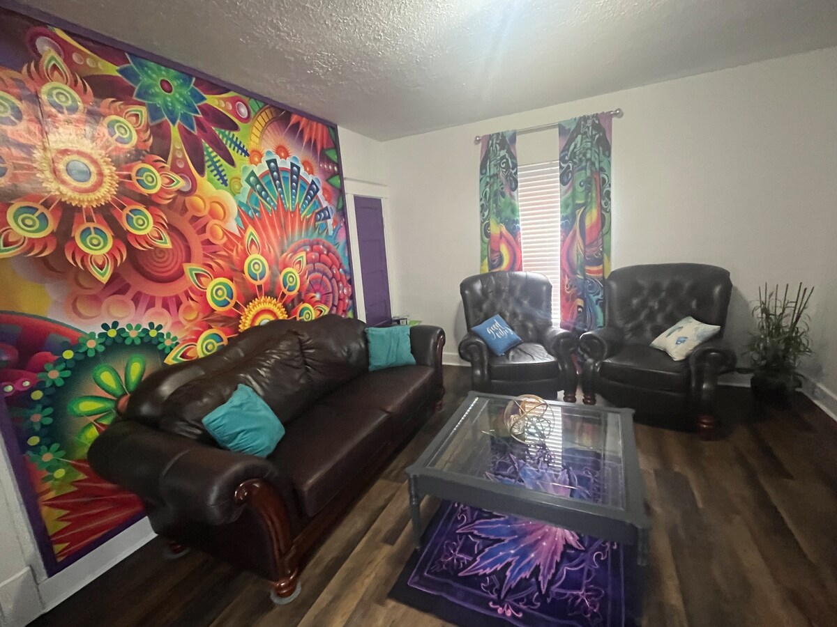 Situé dans le centre-ville historique de Louisville, le Derby City Loft est un spectacle à lui tout seul ! Ce condo de luxe PENTHOUSE offre une vue imprenable et une vie haut de gamme. Le plan d'étage ouvert dispose de 3 lits Queen Size, les rideaux peuvent être tirés pour en faire 2 chambres. De plus, le canapé convertible surdimensionné peut également accueillir 2 personnes confortablement. Cuisines entièrement approvisionnées et salles de bains avec tout ! Cette maison a été conçue et décorée avec votre confort à l'esprit, détendez-vous et profitez d'un séjour de style au Derby City Loft.
