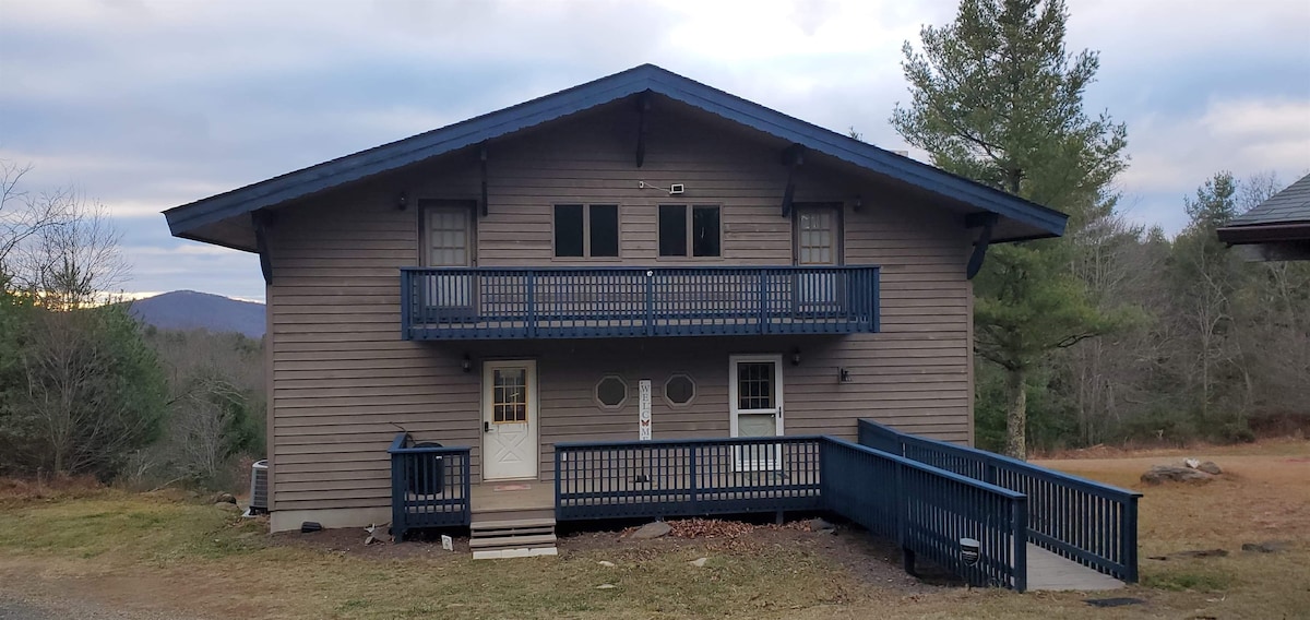 Admirez les montagnes Blue Ridge depuis un chalet triangulaire et faites preuve de générosité en même temps. Toutes les 10 nuits de location, vous offrirez 1 nuit gratuite à une famille qui a adopté ou est en famille d'accueil. 3 chambres et un loft avec un canapé-lit pour 8 personnes (10 avec matelas gonflable). 1 chien autorisé. Admirez le coucher de soleil depuis le jacuzzi ou les chaises autour du foyer. Réveillez-vous et sirotez du café sur la terrasse privée de chaque chambre. BR Parkway, Floyd VA, Fairystone State Park et Philpott Lake sont tous à 20 minutes.