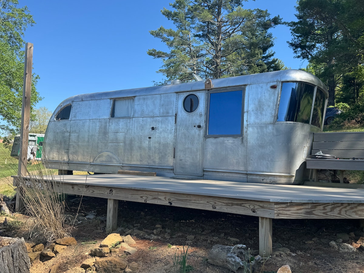 La Bonnie and Clyde est une caravane de voyage Vagabond originale qui a été soignée avec amour et qui est une douce escapade pour une ou deux personnes. Le Green Acres Resort accueille des caravanes de voyage vintage rénovées selon un niveau de confort confortable. Nous disposons d'un étang de baignade alimenté par des sources avec sa propre plage de sable doré, de terrains de pickleball, d'un foyer et de barbecues, et d'un bain public personnalisé. Floyd Virginia est le cœur de la campagne et les étoiles brillent ici. Nous sommes ravis de vous accueillir au Green Acres Resort !