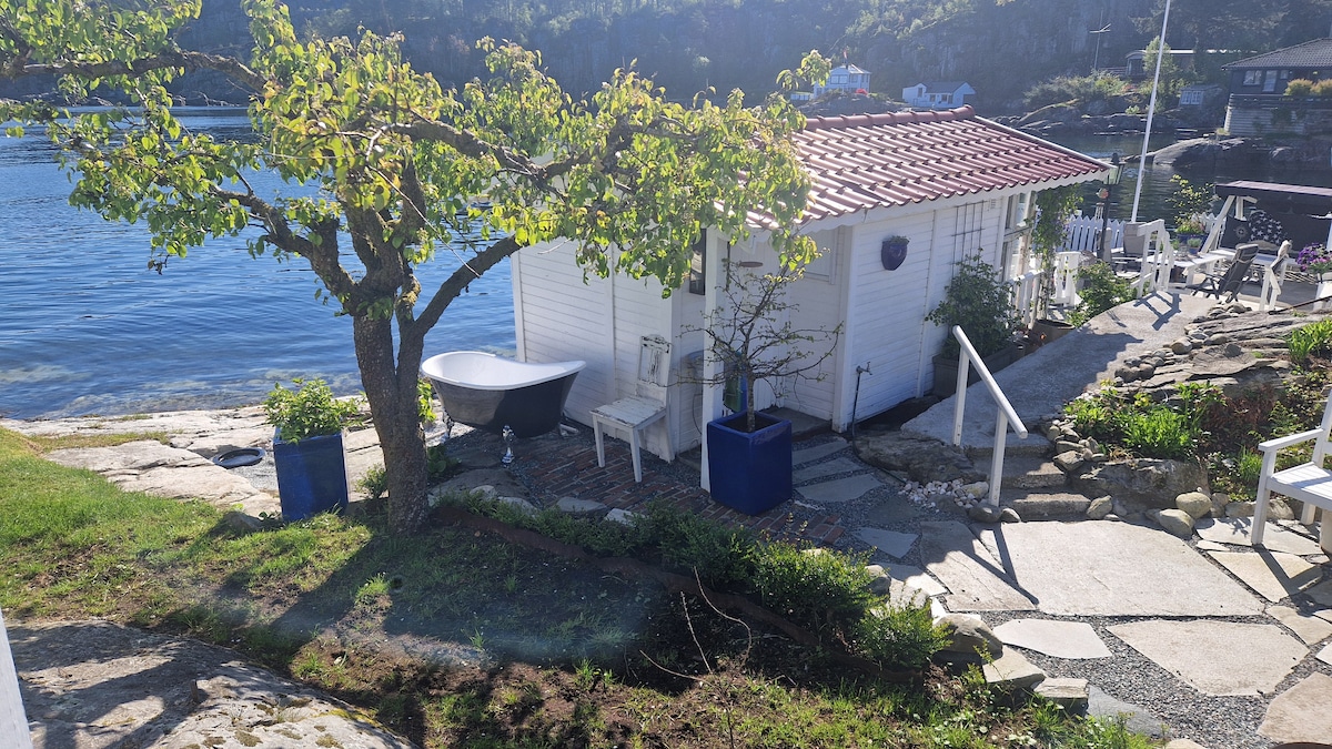 Zone idyllique et paisible avec de belles vues et accès à la mer. La cabane a été rénovée récemment, avec terrasse et son propre jardin. La location de linge de lit et de serviettes (2 par personne) est incluse dans le prix. Possibilité de louer un bateau de plaisance (pendant la saison estivale). Accès par une jetée privée à environ 3 minutes de marche. Vous devez être un expert en bateaux. Possibilités de baignade et de pêche. Grande nature et terrain de randonnée. L'immeuble date de 1952. 57 m2 + salle de stockage.