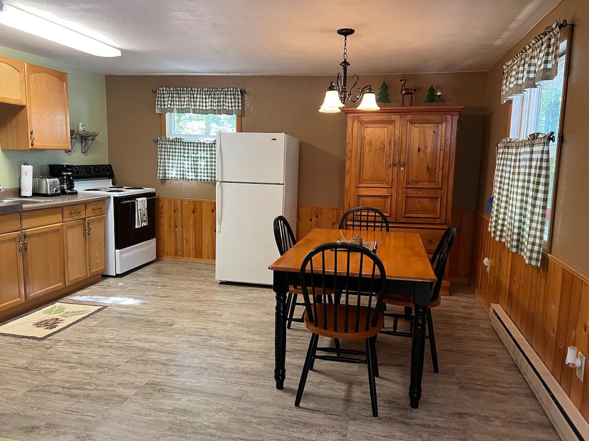 Lieu de rassemblement remarquable pour la famille et les amis. Table à manger pour 12 personnes avec vue sur le lac. Deux grands espaces de vie. Foyer intérieur et anneau de feu extérieur. Cuisine entièrement équipée. Quatre chambres avec lits King Size, trois ont également des lits superposés. Trois salles de bains complètes, deux chauffe-eau de grande capacité. Gril à gaz et aire de pique-nique extérieure donnant sur le lac cristallin de 550 acres avec des jouets aquatiques à profusion (kayaks, SUP, canoë, chaloupe, voir le guide). À quelques pas du lac, à quelques minutes de la colline de ski. Quai 5/23-9/15