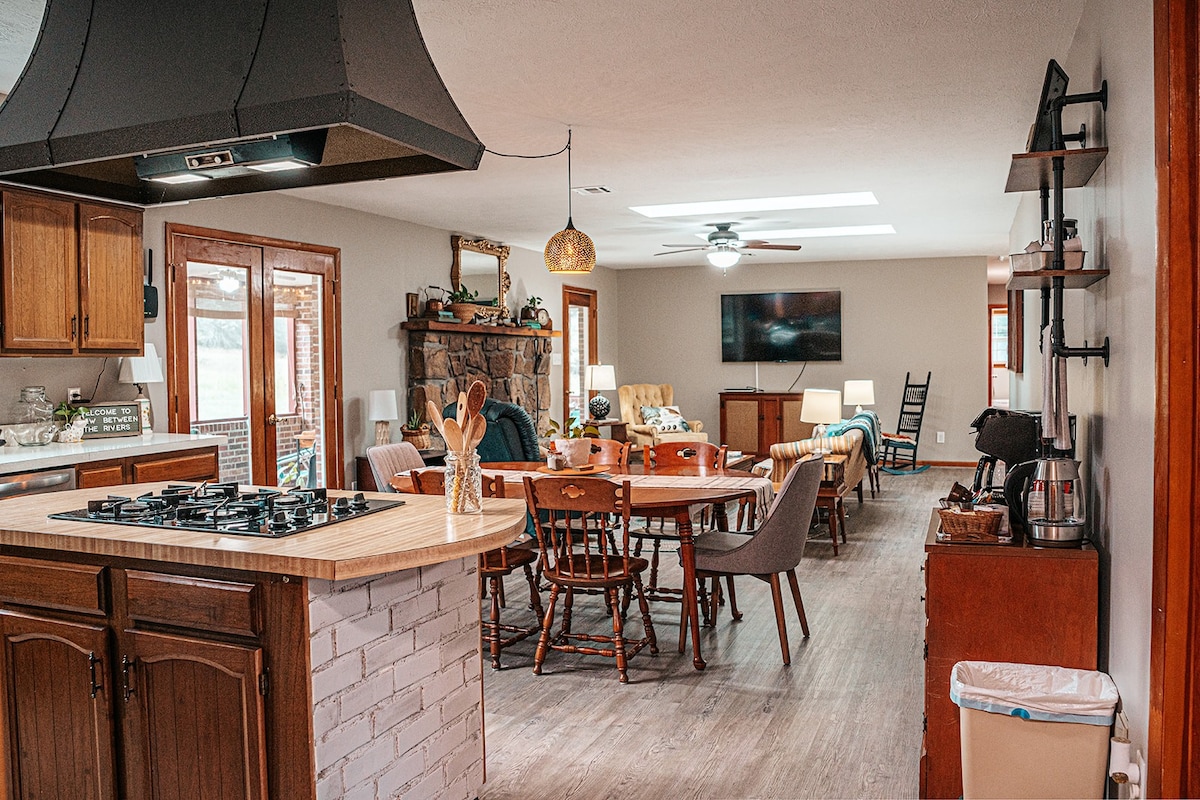 Situé sur l'un des Seven Bends de la rivière Shenandoah, le Bird's Nest est un tout nouveau chalet de 800 pieds carrés construit sur mesure et doté d'un loft ouvert avec lit King Size et puits de lumière, douche à vapeur, plancher de salle de bain chauffé et foyer au gaz. Les équipements extérieurs comprennent un jacuzzi, un barbecue à gaz, une table de foyer à gaz, un foyer au bord de la rivière et un accès privé à la rivière dans un cadre paisible et boisé. Des kayaks/bouées sont disponibles pour descendre la rivière avec la possibilité unique de se garer/sortir sur la propriété des hôtes.