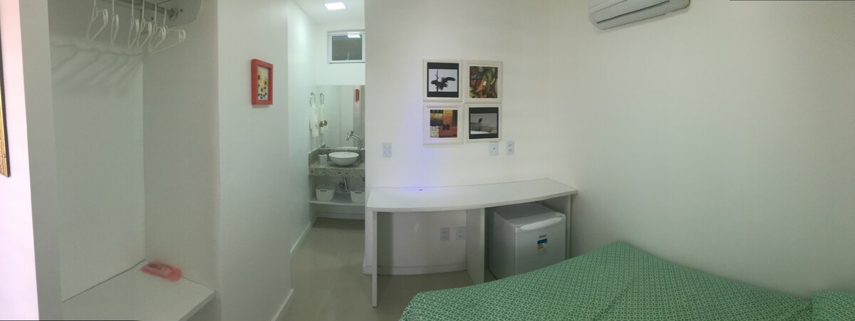 La suite climatisée au cœur de Praia de Iracema, dans la rue la plus branchée du quartier, est à seulement 60 mètres du sable de la plage. Endroit pour ceux qui aiment s'amuser, avec des bars et des salles de concert. La résidence est une grande maison avec 4 suites que je loue, toutes meublées et avec literie disponible. Venez simplement profiter.