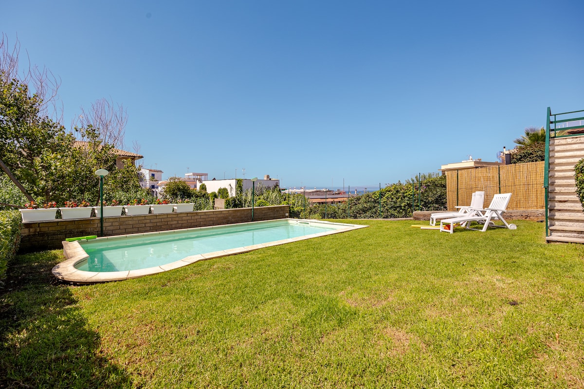 Détendez-vous et ressourcez-vous dans cette oasis de paix, un jardin tropical de palmiers et de bambous à seulement 30 minutes de Rome et 10 minutes de la plage. Entrée panoramique avec salon et cuisine donnant sur le jardin et la piscine à usage exclusif, tout le confort, y compris la climatisation, le Wi-Fi et peut accueillir 6/8 personnes. Espace barbecue, espace de test de vin, ping-pong, fitness. (CIN IT059001C2MZRWN22E)