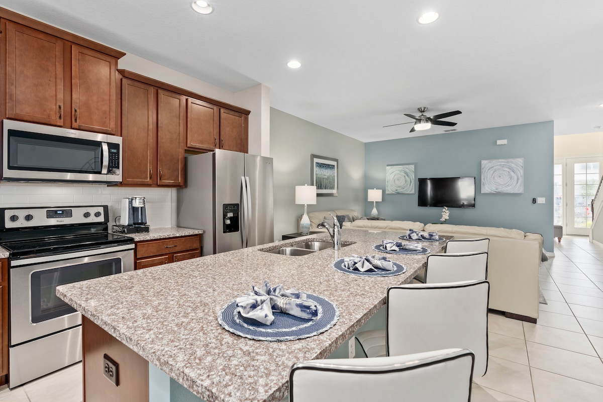 À seulement 11 miles de Disney World, vous êtes dans cette retraite paisible de la merveilleuse communauté fermée de West Haven, votre nouvelle maison loin de chez vous. Cette maison vient d'être rénovée et aménagée comme une nouvelle maison de vacances. Votre famille appréciera deux suites king, une chambre queen et une chambre à deux lits jumeaux. La nouvelle cuisine est équipée de tous les appareils pour cuisiner votre repas préféré. La salle à manger traditionnelle rassemblera tout le monde pour un merveilleux moment inoubliable. La piscine avec brasero est un véritable paradis tropical.