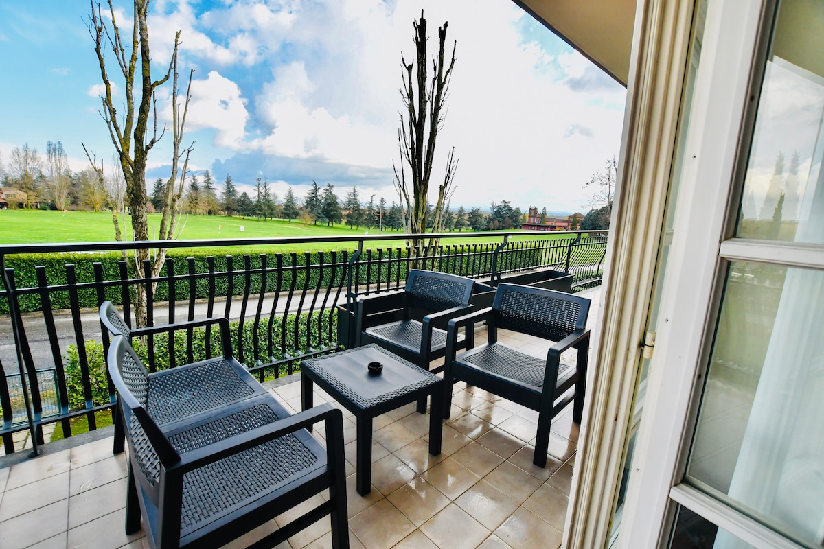 ✨ Là où la détente rencontre le Monferrato Bienvenue à Angolo Paradiso 💛 Un hébergement chaleureux et lumineux situé dans le cadre exclusif du Golf Club Margara, au cœur du Monferrato 🌿 Ici, tranquillité, confort et une grande terrasse panoramique avec vue sur les parcours de golf vous attendent ⛳ L’endroit idéal pour commencer la journée en douceur, travailler en toute sérénité, se détendre en plein air ou profiter d’un apéritif au coucher du soleil 🍷