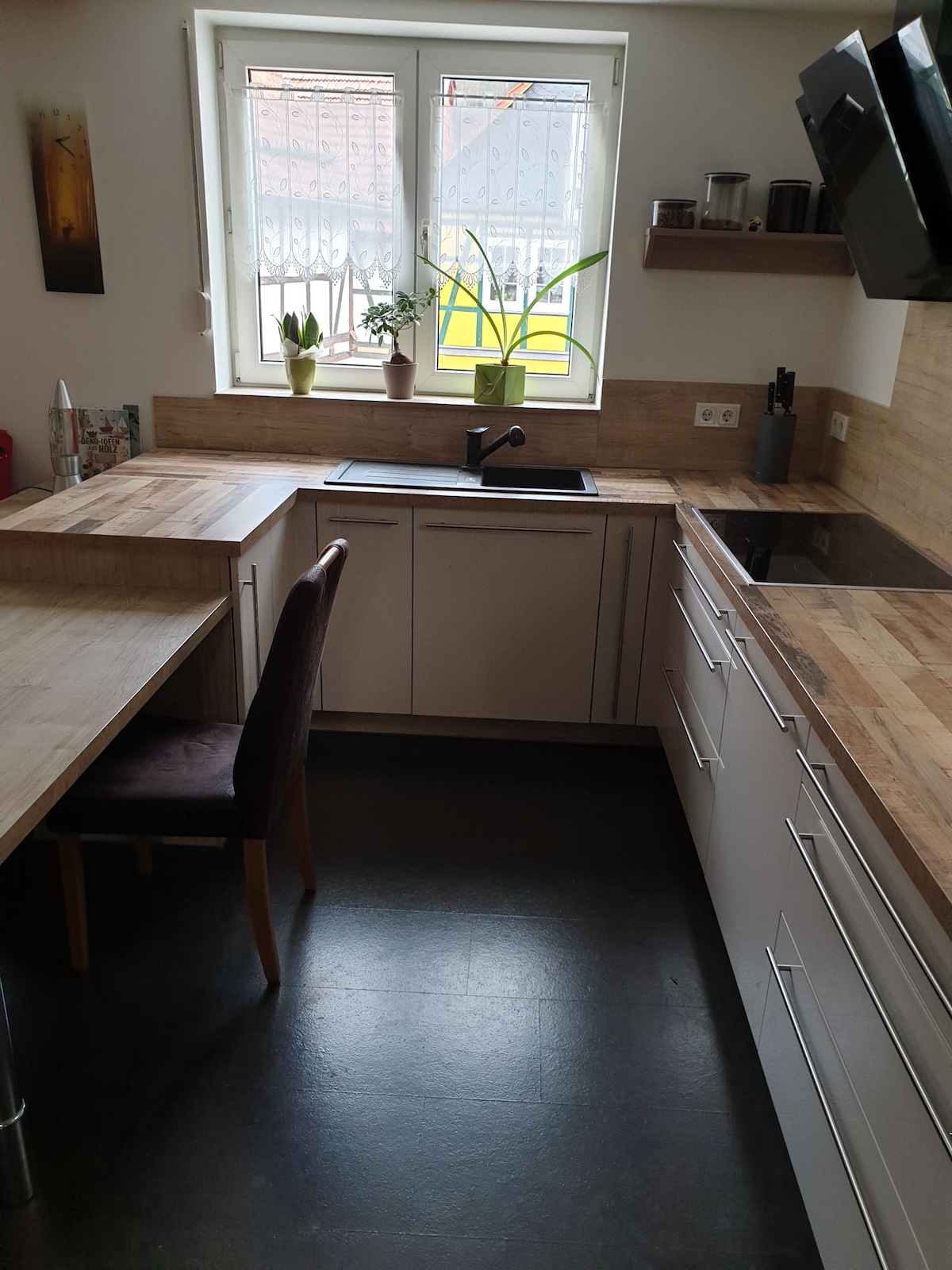 Studio entier et indépendant, 52 m², avec cuisine intégrée bien équipée, couloir et salle de bains. L'emplacement est idéal si vous voulez explorer Eisenach, le Wartburg ou les possibilités de randonnée à pied. (Musée Bachhaus, marché et Lutherhaus 10-15 min., Wartburg : env. 35 min. (chemin forestier), gare : env. 15 min. Randonnée : Juste derrière la maison commence la forêt et de nombreuses possibilités de randonnée à proximité. Je donne volontiers des conseils et du matériel d'information. Les fenêtres de l'atelier donnent sur la cour, qui est en partie verte, en (grande) partie sert de parking. Divers restaurants et cafés sont situés sur le chemin du centre-ville à proximité (environ 6-10 minutes à pied). Le quartier sud environnant est le quartier résidentiel préféré d'Eisenach et vaut la peine d'être vu rien qu'en raison de ses nombreuses villas Art Nouveau. En hiver, le marché de Noël historique sur le Wartburg est une expérience particulière (tous les week-ends de l'Avent). Si l'étang du prince à proximité (2 min.) est gelé, il est visité par petits et grands pour le patinage ! L'atelier (non-fumeur), qui se compose d'une grande pièce avec cuisine intégrée, offre de la place pour 2 personnes (1,40 m x 2,00 m) sur un canapé-lit confortable. Comme les demandes se multiplient, il est désormais possible d'en accueillir un 3ème. place de couchage sur un matelas d'appoint. Café et différentes sortes de thé sont à disposition gratuitement. Les draps, les serviettes et le sèche-cheveux sont fournis. En outre, bien sûr : ustensiles de vaisselle/torchon, papier toilette, savon, shampoing/gel douche. Les clients qui arrivent en voiture disposent d'un parking privé juste devant l'entrée. Notice: actually the studio is not available on wednesdays, (arrival wednesday-evening is sometimes possible). Exception: school-holidays. Remarque : à l'exception des vacances scolaires et des jours fériés de Thuringe, l'atelier ne sera pas disponible le mercredi de 16 h à 18 h. Si votre séjour comprend un mercredi, vous recevrez un délicieux petit déjeuner en guise de petite compensation. Faites-moi simplement part de votre journée souhaitée avant votre arrivée.