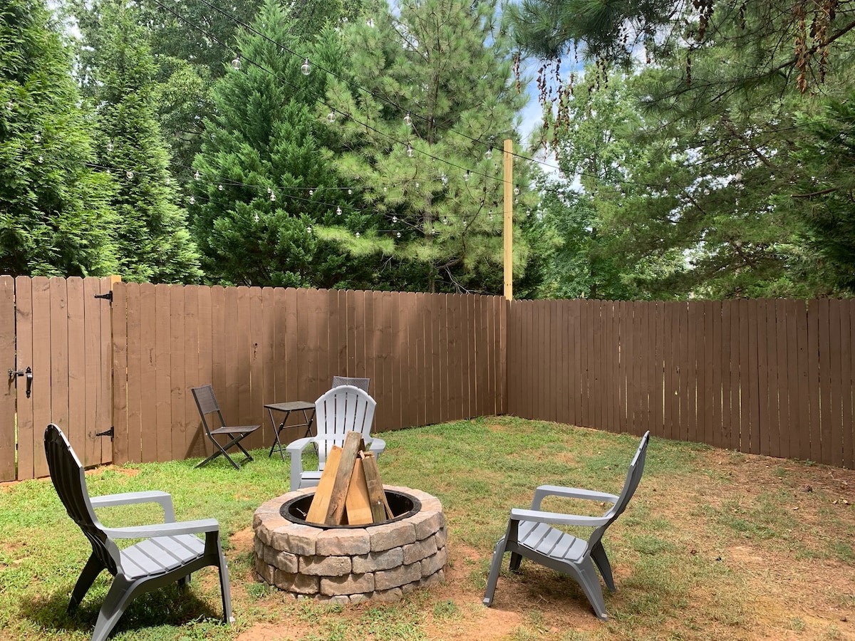 Découvrez le charme et la tranquillité de notre bungalow central au cœur de la forêt historique de Wake, à quelques minutes de Raleigh. Cette charmante maison offre un mélange parfait de charme historique et de confort moderne. Le jardin enchanteur est un havre de détente avec des guirlandes lumineuses, un jacuzzi, une salle à manger, un foyer, un espace de jeu de poches et une cour entièrement clôturée. Marchez ou faites du vélo jusqu'au centre-ville charmant et animé de Wake Forest et explorez ses boutiques, cafés et attractions locaux.