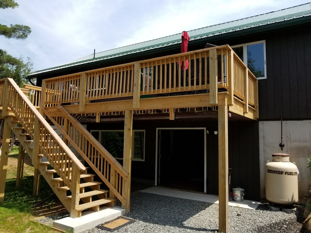 Soyez parmi les premiers à profiter de ce chalet climatisé récemment rénové. Le grand espace ouvert permet à votre groupe de se détendre en famille. L'emplacement pratique à un mile du côté Lake Placid du lac Saranac permet un accès facile au ski, à la randonnée, au golf, aux courts de tennis, à la motoneige, à la navigation de plaisance, aux événements olympiques, à l'exploration du lac Placid ou à la communauté historique du lac Saranac. Les grandes terrasses et le grand parking en font un endroit idéal pour rester sur place et profiter de notre espace. Bienvenue à Ray Brook !