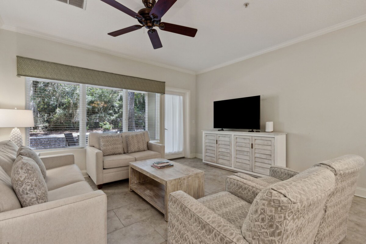 Bienvenue à Selah and Sea ! Cet appartement en bord de mer acceptant les chiens sur l'Amelia Island Plantation Resort offre une vue imprenable sur la côte et une forêt maritime sereine. À quelques minutes de Fernandina Beach, profitez d'une cuisine entièrement équipée, d'un balcon privé, d'un lave-linge/sèche-linge, d'une connexion Wi-Fi haut débit et de téléviseurs à écran plat. Des chaises de plage et un chariot sont prêts pour vos aventures en bord de mer. Créez des souvenirs durables dans cette retraite au troisième étage !