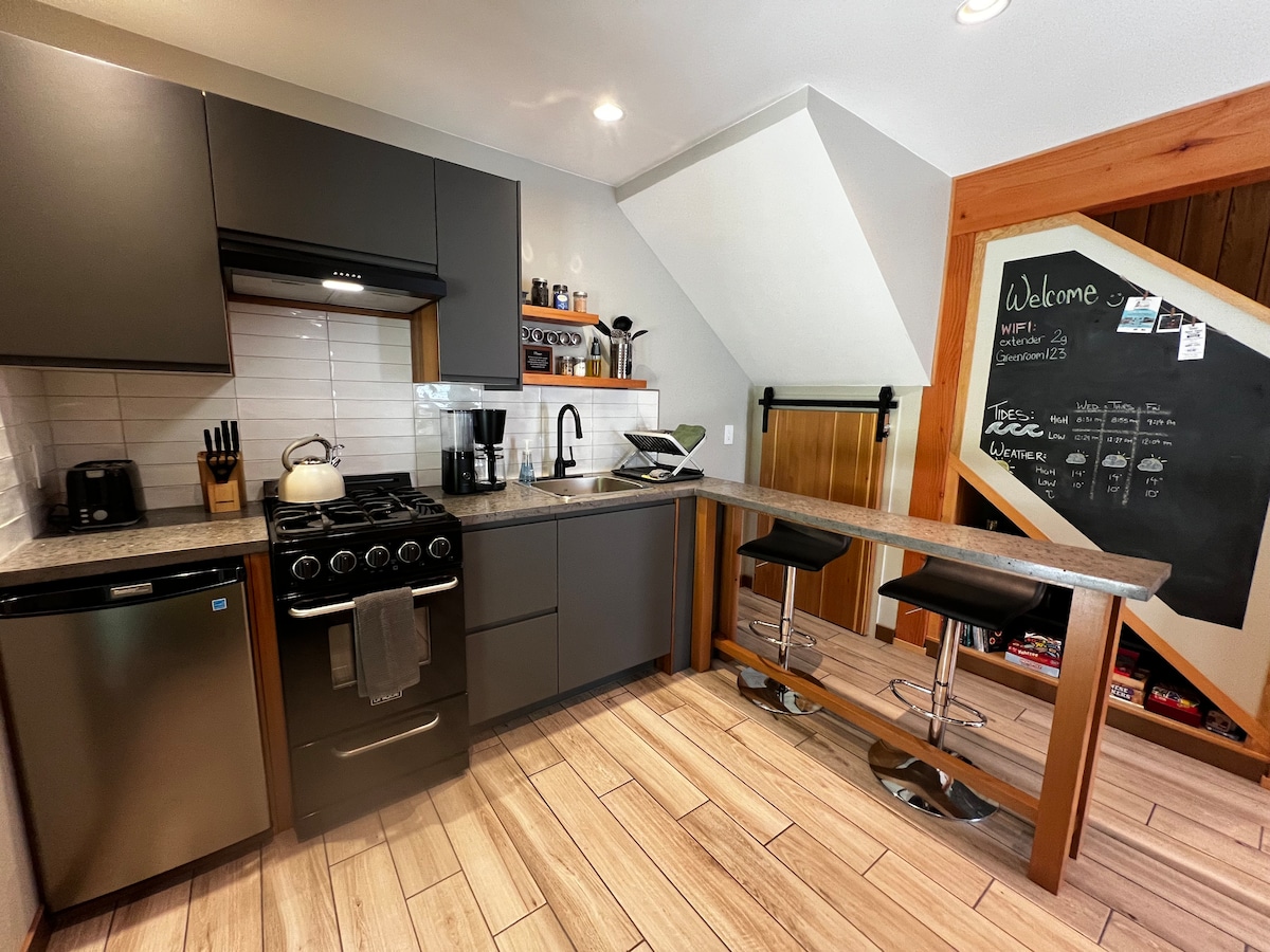 Ce chalet de style côte ouest de 3 chambres et 3 salles de bain est parfait pour les familles ou les couples qui cherchent à explorer la côte ouest ou à se détendre avec style. Le chalet se trouve à quelques pas de la plage de sable de French Beach et d'un sauna de luxe en bois de cèdre sur place. Le chalet dispose d'une cuisine inspirée du chef avec des ustensiles de cuisine gastronomiques et est parfait pour organiser des dîners et des rassemblements familiaux. Restez au chaud près de la cheminée à bois et profitez de la vue naturelle sur la superbe propriété de 2,66 acres.