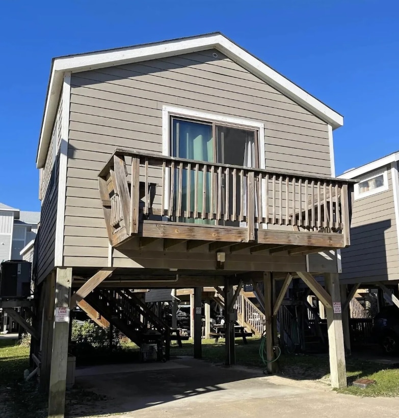 Chambre PRIVÉE avec entrée PRIVÉE et salle de bain PRIVÉE. La terrasse donne sur la forêt nationale de la côte. Juste à côté de l'accès 4/4 à la plage, rampe 49. Partagez la maison avec Red Drum Pottery et Community Yoga. Mais une fois que vous serez enregistré, nous ne vous reverrons peut-être plus. Votre chambre est TRÈS PRIVÉE. Vous avez le logement entièrement pour vous de 17 h à 10 h. Nous ouvrons à 10 h. Souvent, nous ne vous voyons même pas parce que vous êtes debout et dehors avant que nous arrivions et de retour après notre départ.