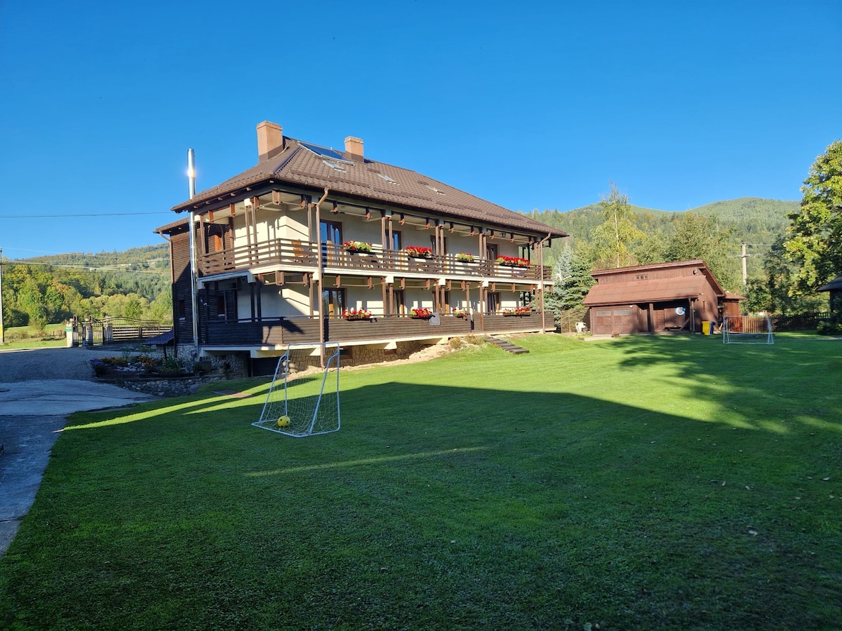 La noi poti savura frumusetea naturi intr-o proprietate de peste 4 hectare. 🍀🌲🌳Cabana la Noi in Bucovina poate fi localizata in ❤ Bucovinei loc. Vama - Suceava 🍀🌲🌳Va oferim: - 14 locuri de cazare in 6 camere - 2 bai parter si etaj - sala de servit masa - bucatarie utilata - Tv si internet Wi-Fi - foisor mare 32 persoane cu gratar si plita - loc de joaca pentru copii ( hute, tobogan ,balansuar ) - 2 balansuare din lemn rotund - mică partie de agrement pentru sanie si schi în sezonul rece