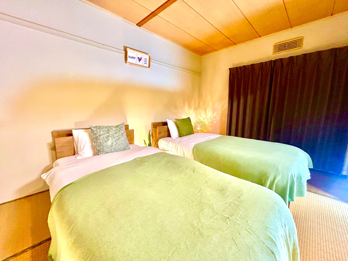 Ce logement est situé dans la zone des villas de vacances à Ajiro, à seulement 10 minutes d'Atami Central. Comme il est situé à un niveau supérieur, chaque chambre offre une vue imprenable sur l'océan ! Profitez de la vue magnifique dans un lit queen confortable, salon ou balcon. En outre, cet hébergement dispose d'une salle de bains de style traditionnel en pierre où vous pourrez profiter des sources chaudes naturelles :-) Détendez-vous dans ce nouvel hébergement construit en avril 2021 et profitez de votre voyage à Atami !