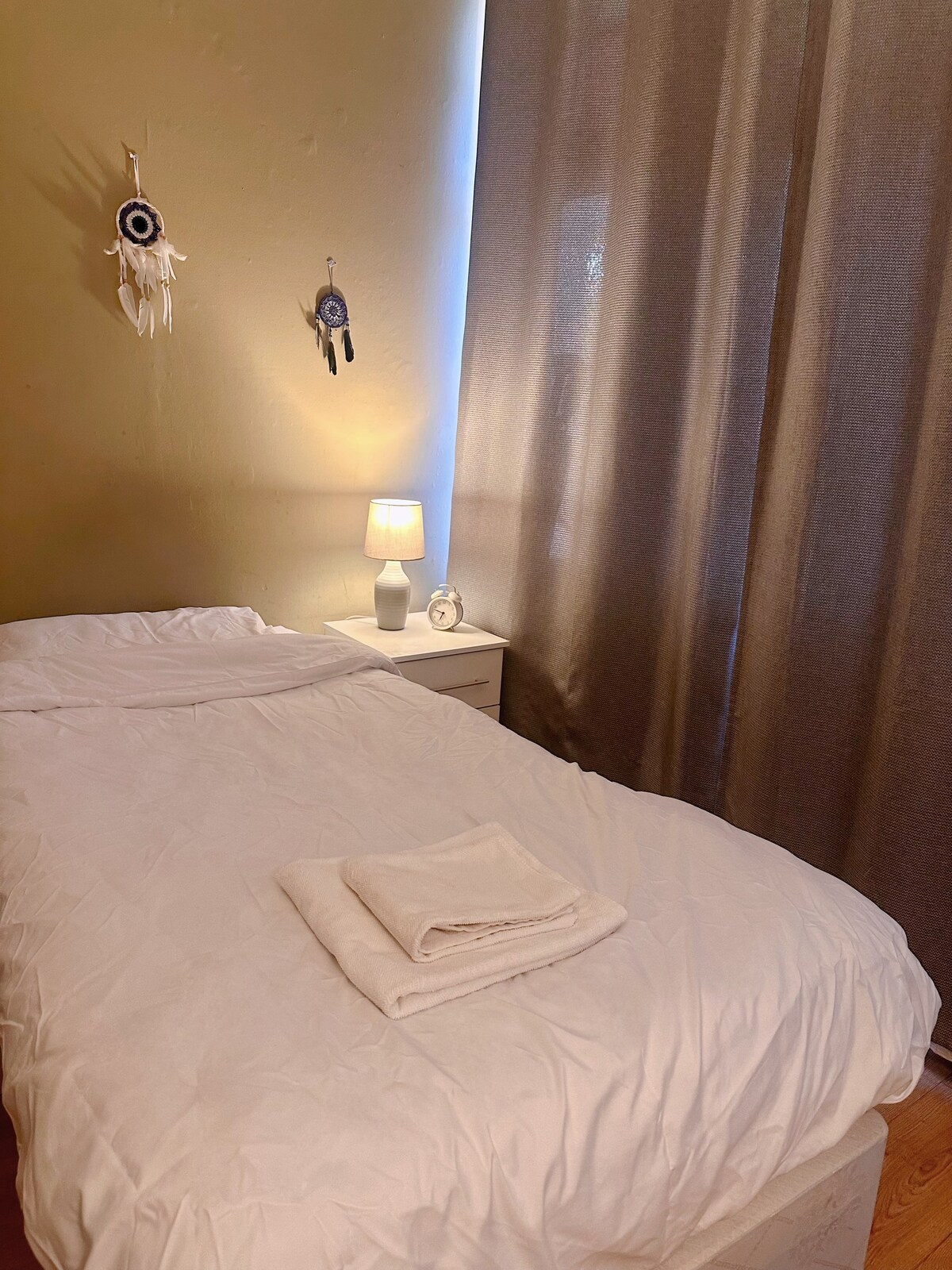 Profitez d'un logement élégant et central. Je loue mon bel appartement récemment rénové à West Kensington. L'appartement offre tout ce dont vous avez besoin pour profiter de votre séjour. Le lit king size est ce dont vous avez besoin pour bien dormir. Emplacement : route à sens unique paisible, sûre et calme. Métro : 5 min à pied de la ligne District (West Ken) ; 10 min à pied de la ligne Piccadilly (Barons Court Station) de sorte que vous êtes à 20 min du centre de Londres. Le supermarché est à 2 min à pied, beaucoup de bars et de cafés.