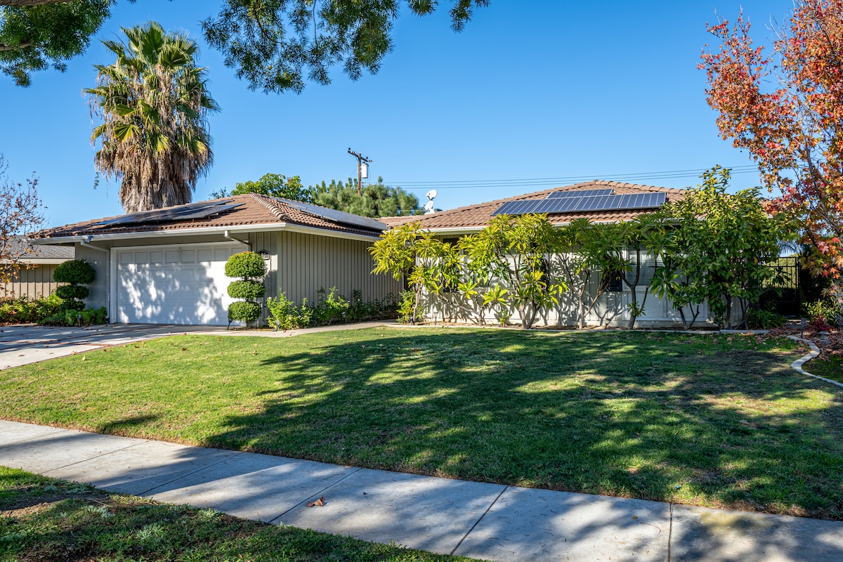 Belle retraite nichée dans la ville d'Orange, à quelques kilomètres de Disneyland, du Centre des congrès d'Anaheim et des villes balnéaires. La maison dispose de 4 chambres (2 suites), de 3 salles de bains, d'une cuisine complète et d'une kitchenette/bar. La maison se trouve sur un grand terrain avec une cour arrière spacieuse parfaite pour les barbecues, les dîners, s'asseoir autour de la cheminée ou tout simplement profiter de l'air frais. La maison est impeccable avec une aile récemment rénovée. Nous sommes fiers d'offrir une expérience exceptionnelle à nos voyageurs.