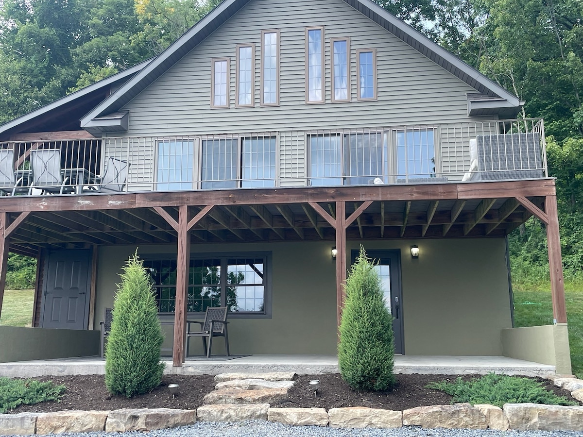 Notre spacieuse cabane toute neuve est située dans la campagne de Clearville, en Pennsylvanie. Le logement se trouve à moins de 50 minutes du lac Raystown. La faune de montagne et un ruisseau qui coule constituent un cadre très paisible pour la cour avant et la terrasse. L'espace La cabane peut accueillir 5 chambres et un loft. Il y a un total de 10 lits plus un matelas de la taille d'un enfant dans une chambre et un canapé-lit au sous-sol. Pour maximiser la socialisation et la création de souvenirs, le salon, la salle à manger et la cuisine s'écoulent tous dans une grande pièce.
