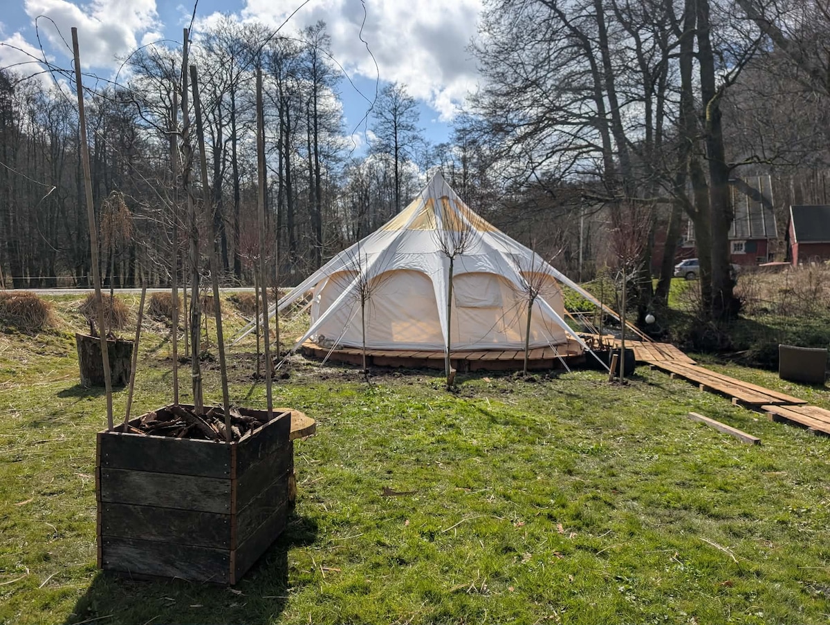 Profitez du son de la nature en séjournant dans ce logement unique. Vous y vivrez complètement seul et tranquille. La tente est située au fond de la forêt, il y a donc une belle route, mais très vallonnée. Si vous avez des difficultés à marcher, ce voyage ne vous conviendra pas. Il y a 350 mètres entre le parking et la tente. À disposition : - Barbecue à gaz - Brûleur à gaz - Service - Cafetière à piston - Glacière - Alimentation pour charger le téléphone portable - Toilettes de camping (avec sac) - Sac de douche chauffé au soleil (20 L) pour le bain - Eau pour la cuisine